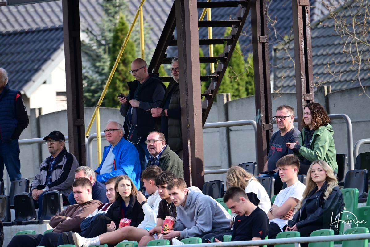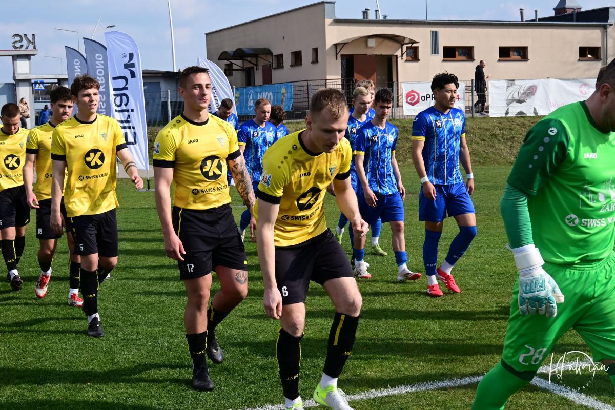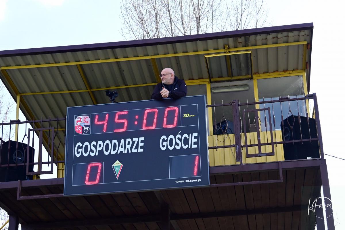 Dla obu ekip to był bardzo ważny pojedynek. Oba zespoły walczą o utrzymanie w czwarto ligowych rozgrywkach i każdy punkt jest na wagę złota. Żaranie po zwycięstwie z Wartą chcieli na pewno podtrzymać dobra passę. Jednak pierwszą bramkę zdobyli goście. Rafał Kotwica przymierzył z 30 metrów i zaskakując wszystkich, być może nawet samego siebie, umieścił piłkę w siatce. Gospodarze długo nie mogli się otrząsnąć po tym ciosie. Nic się nie kleiło podopiecznym Piotra Makowskiego, a goście cofnęli się na własna połowę i pilnowali wyniku. Dopiero 10 minut przed końcem miejscowi w końcu przypomnieli sobie, że potrafią grać w piłkę. Przeprowadzili dwie bardzo groźne akcje, niestety niezakończone celnym strzałem i na przerwę schodzili przegrywając 0:1.