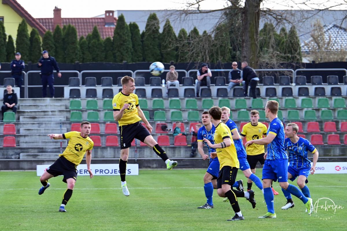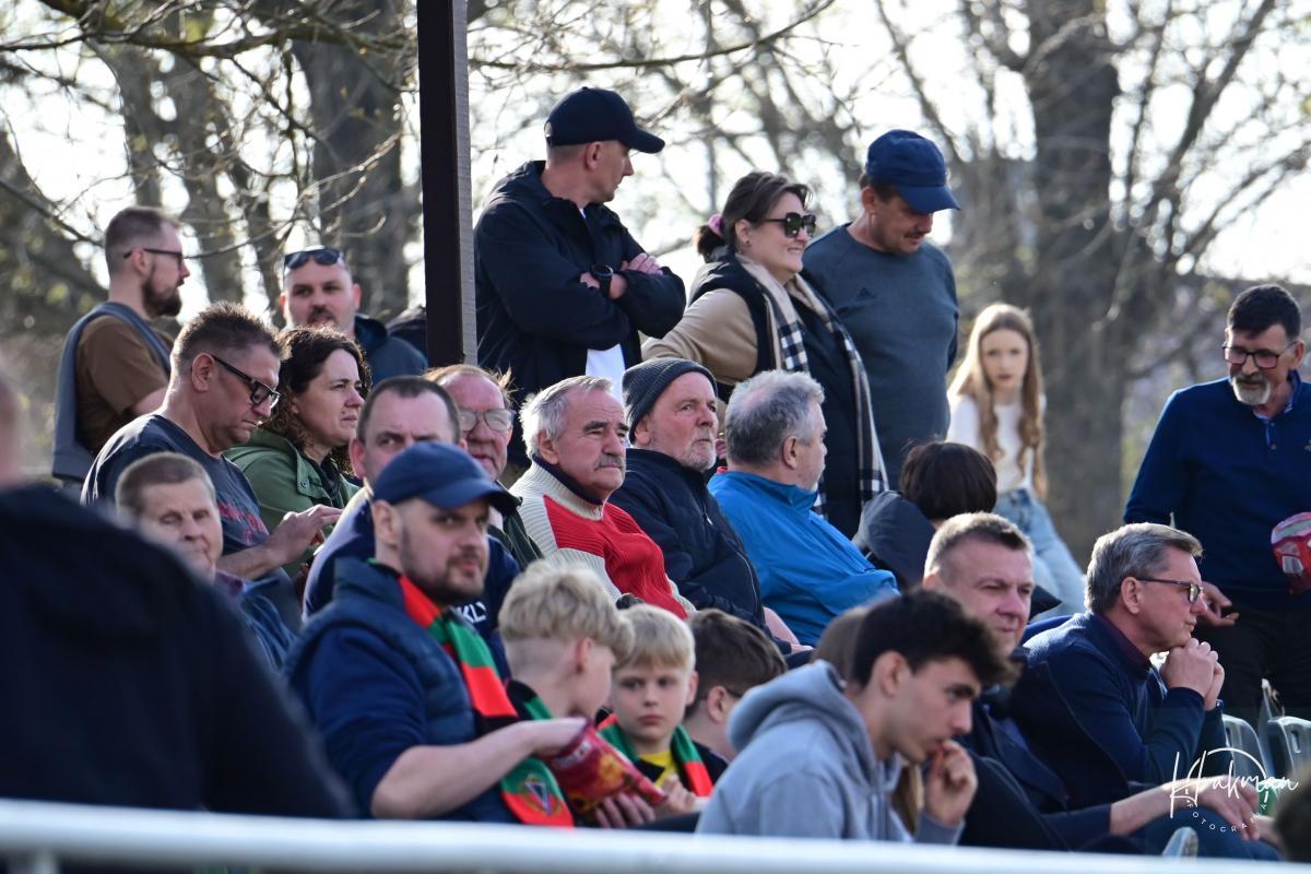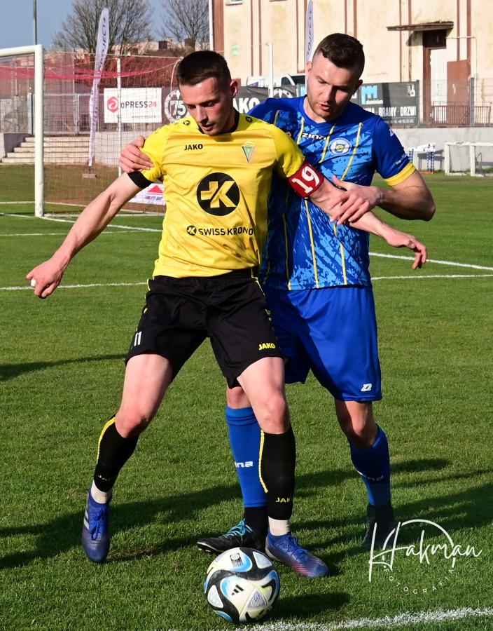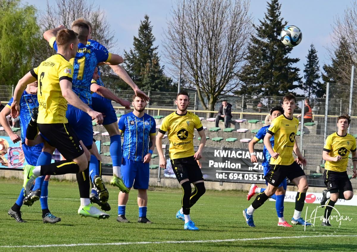 Dla obu ekip to był bardzo ważny pojedynek. Oba zespoły walczą o utrzymanie w czwarto ligowych rozgrywkach i każdy punkt jest na wagę złota. Żaranie po zwycięstwie z Wartą chcieli na pewno podtrzymać dobra passę. Jednak pierwszą bramkę zdobyli goście. Rafał Kotwica przymierzył z 30 metrów i zaskakując wszystkich, być może nawet samego siebie, umieścił piłkę w siatce. Gospodarze długo nie mogli się otrząsnąć po tym ciosie. Nic się nie kleiło podopiecznym Piotra Makowskiego, a goście cofnęli się na własna połowę i pilnowali wyniku. Dopiero 10 minut przed końcem miejscowi w końcu przypomnieli sobie, że potrafią grać w piłkę. Przeprowadzili dwie bardzo groźne akcje, niestety niezakończone celnym strzałem i na przerwę schodzili przegrywając 0:1.