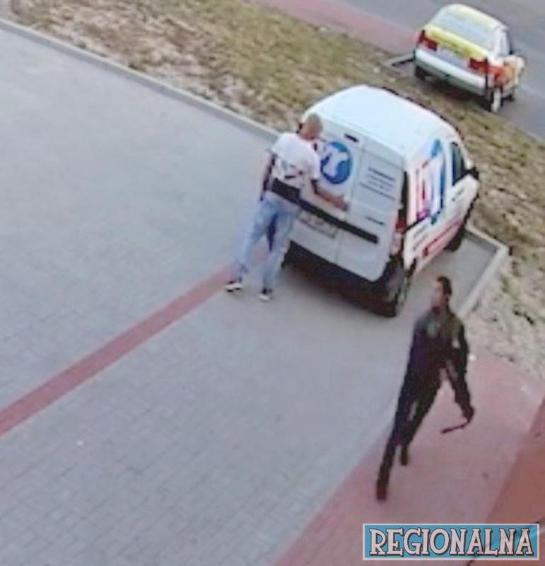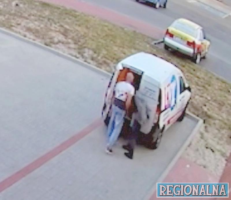Dacia Telewizji Regionalnej była zaparkowana na firmowym parkingu. Jeden ze złodziei pochylił się nad zamkiem od tylnych drzwi i go wyłamał. Drugi stał w tym czasie na czujce. Gdy samochód był już otwarty, zamienili się rolami. Mniejszy, brunet, wszedł na naczepę samochodu i zaczął przeglądać, co jest w środku. W tym czasie łysy mężczyzna obserwował okolicę.