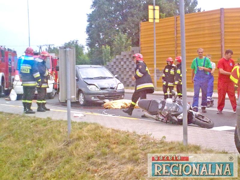 Tragiczny wypadek na ul. Moniuszki w Żarach. Motocyklista zderzył się z samochodem osobowym. Zginął na miejscu.