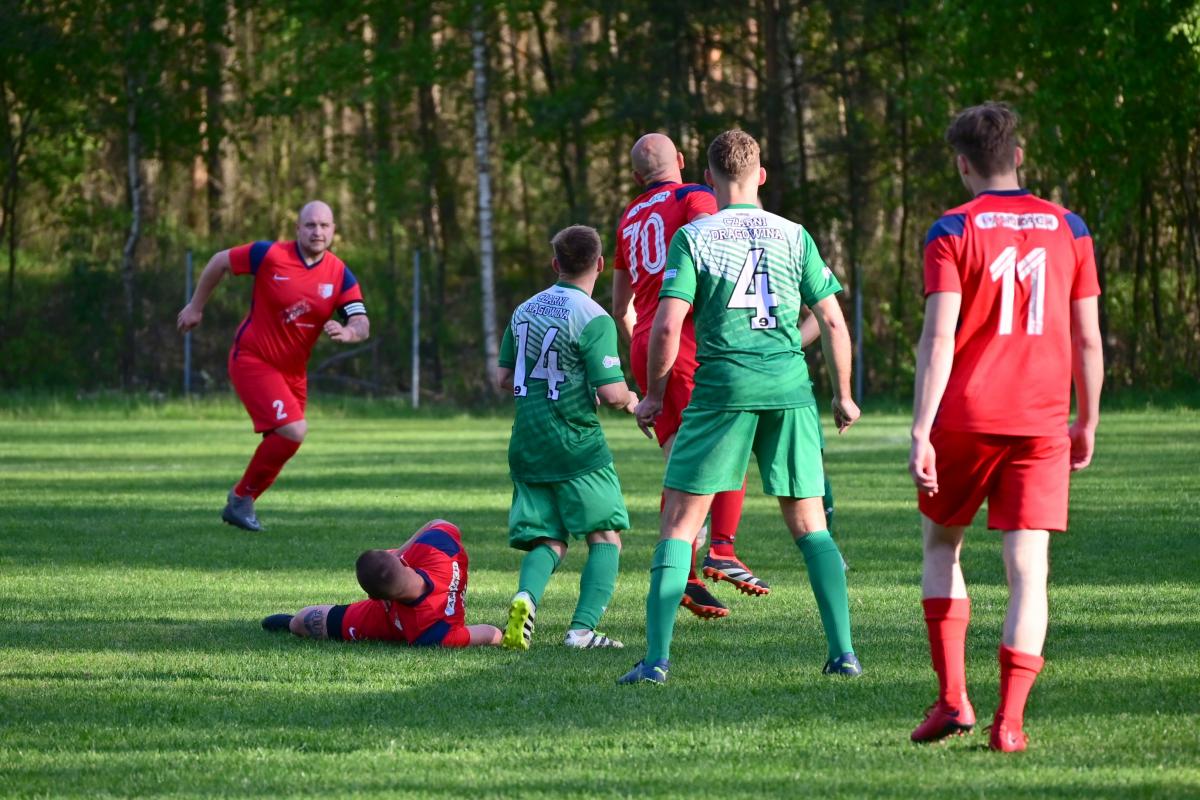 Mając w głowie te informacje podopieczni Marka Sitarka, który znów pojawił się między słupkami w bramkarskim trykocie, zaczęli z wysokiego C. Już w pierwszej minucie Marcin Mościcki zameldował się liście strzelców dając sygnał do walki. Niestety 12 minut później stan meczu wyrównał Patryk Kaniuk. Od tego momentu na murawie przez następne 80 minut trwała prawdziwa wojna o każdą piłkę. Mimo kilku dogodnych sytuacji żadna z drużyn nie potrafiła przechyli szali zwycięstwa na swoją korzyść. Delta zremisowała z czarnymi Drągowina 1:1 i zdobyła ważny punkt.