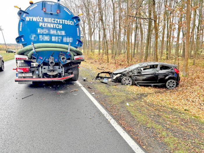 Ból w plecach, mandat i rozbity wóz to dla 39-latka zapewne nie było nic przyjemnego. Ale jednak mogło być gorzej. Dobrze, że szambiarka pozostała szczelna.