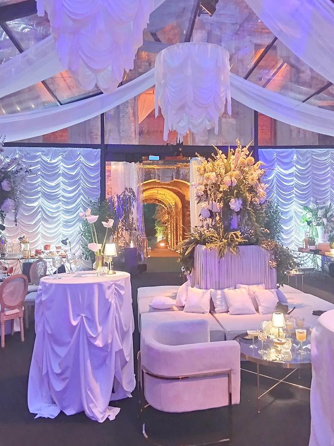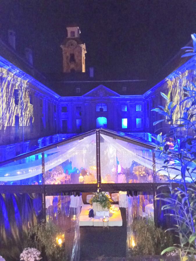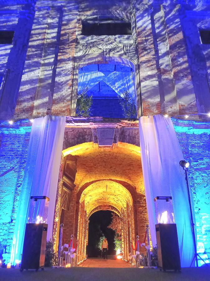 Początkowo obdarte mury ruiny nie robiły niezwykłego wrażenia na gościach. Dopiero jak przyszedł zmrok i włączono iluminacje, zrobiło się klimatycznie. Na imprezę gospodarze zaprosili ok. 150 gości. Ci, którzy chcieli dostać się do pałacu bez zaproszenia, byli odsyłani z kwitkiem przez ochronę, która otaczała pałac.