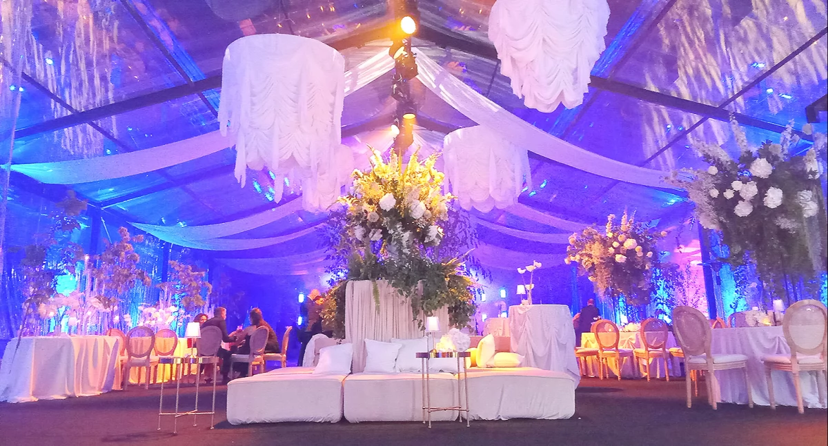 Zaproszeni goście, po wejściu przez bramę przy parkingu, wchodzili na dziedziniec kowalski i kierowali się do bramy wschodniej pałacu. Po przejściu przez bramę, udawali się na wyłożone czarną wykładziną schody, które prowadziły w stronę rozłożonego namiotu z przeźroczystym dachem i ścianami. Przed namiotem gości witali gospodarze imprezy i zapraszali do rozgoszczenia się.