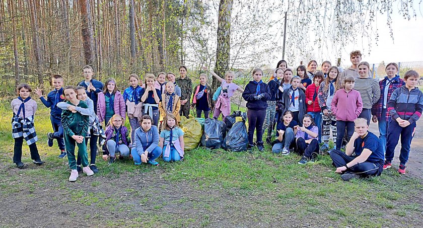 Od uzupełnienia bocianiej „stołówki” rozpoczęli piątkową (21.04.) zbiórkę harcerze z Wielopoziomowej Frużyny Harcerskiej „Bystrzaki” z Jasienia. Pozbierali śmieci w pobliskim lasku. Nagrodą po wysiłku były pieczone kiełbaski i ciasto przygotowane przez Kacpra w ramach zadania na gwiazdkę zuchową.