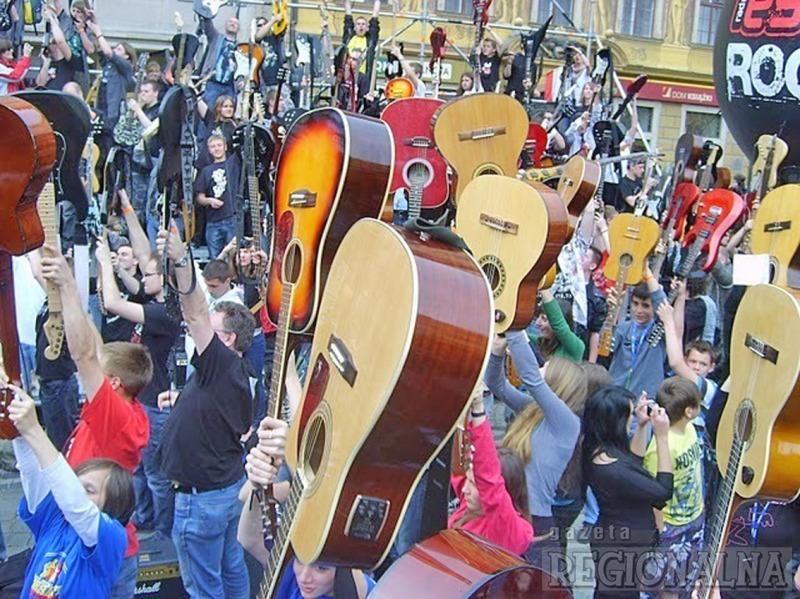 W ub. r. na podobnej imprezie w Zielonej Górze wspólnie zagrało 139 gitarzystów. Zbigniew Adamczak, który jest pomysłodawcą i organizatorem „Gitarowego mostu Zielona Góra – Wrocław”, ma nadzieję, że w tym roku do zabawy przyłączy się jeszcze więcej osób. Może nawet ponad 200. – Pamiętam, jak zaczynał Wrocław. Na początku przyszło ponad sto osób. W następnych latach było już kilka tysięcy – opowiada. Dwa lata temu we Wrocławiu zagrało 6346 muzyków. Ile będzie w tym roku, nikt nie jest w stanie przewidzieć. Zielona Góra dzielnie będzie jednak wspierać gitarzystów z Wrocławia. Przed Galerią Focus rozstawiona zostanie scena, na której zawiśnie telebim. Będzie na nim widać, jak bity jest rekord we Wrocławiu. – Nie robimy żadnej kontrabandy. Nasza impreza to propozycja dla tych, którzy nie będą mogli pojechać do Wrocławia – mówi Adamczak. Niestety, zielonogórzanie nie będą wliczani do tego rekordu, bowiem zasady Guinnessa są takie, że może on być bity w jednym miejscu. Grać Hendrixa w tym samym czasie będzie także Kolonia, Oslo i Chicago. Jednak tylko Zielona Góra będzie miała połączenie z Wrocławiem.