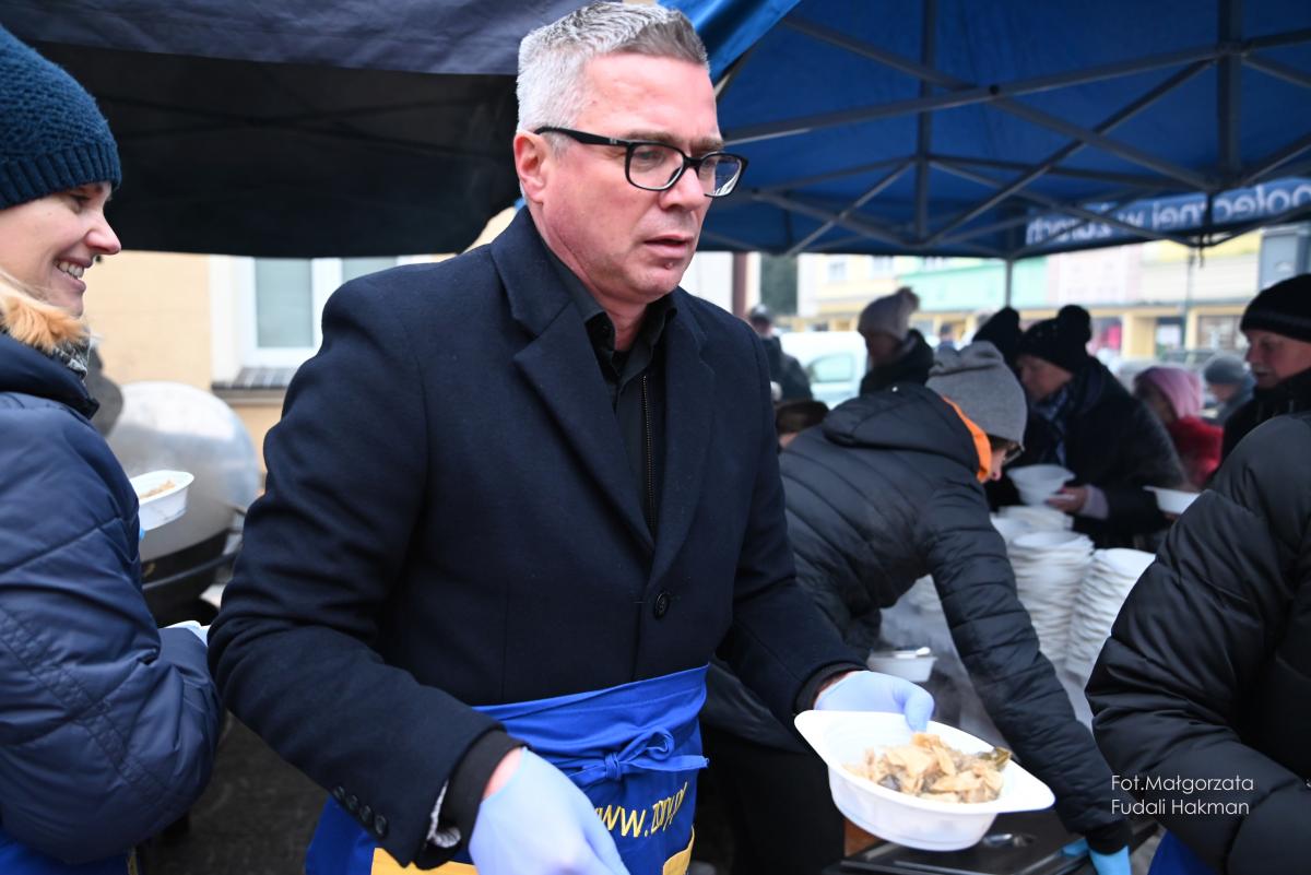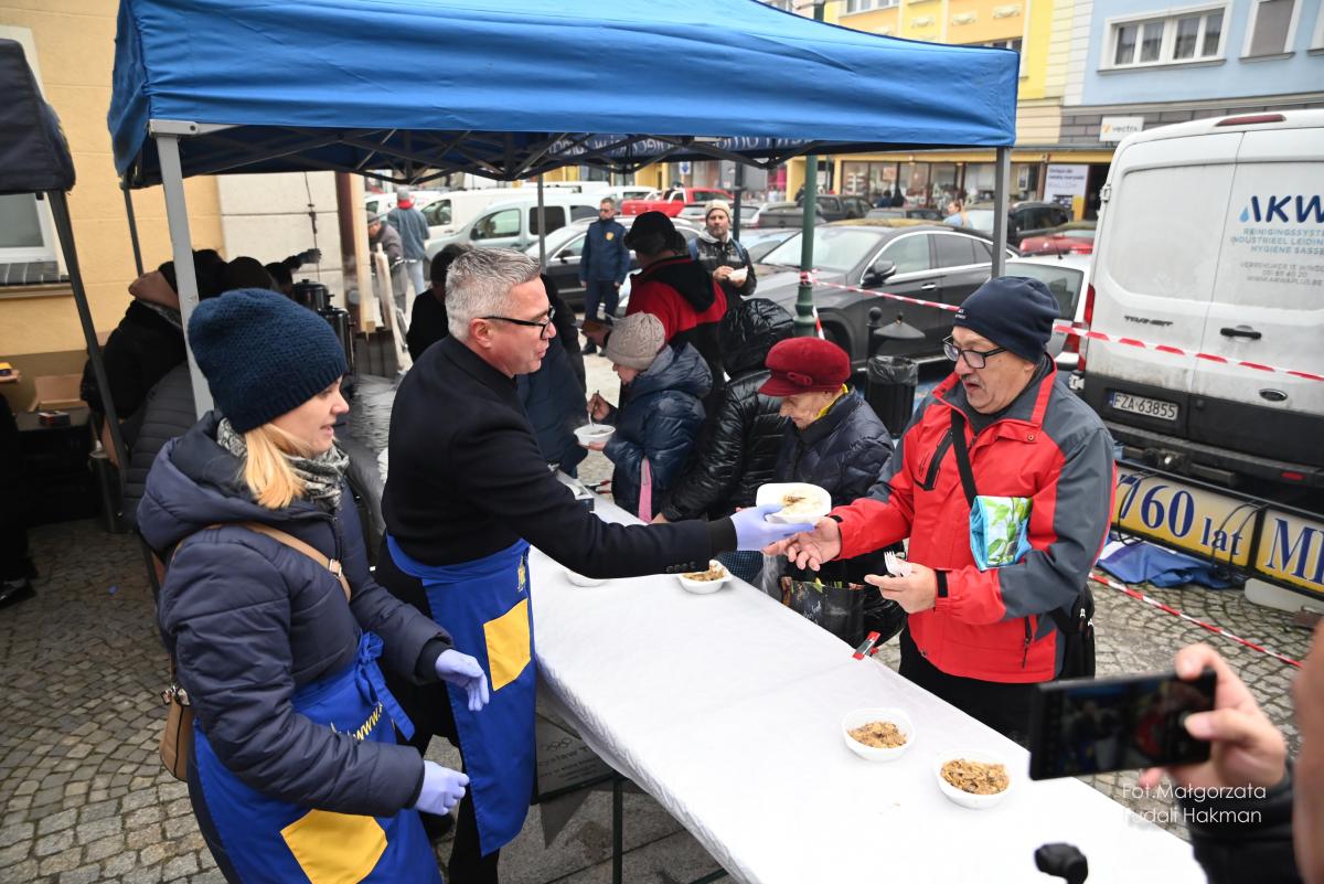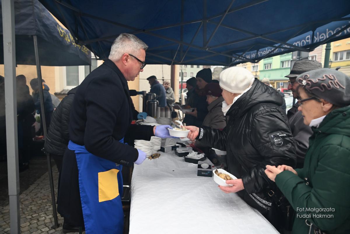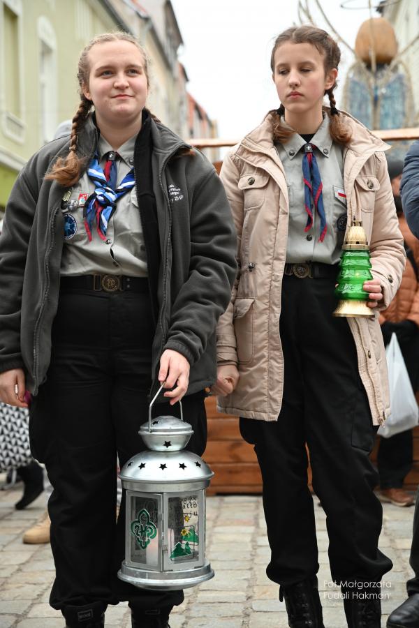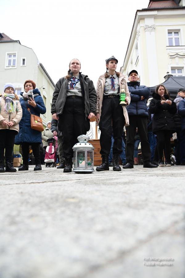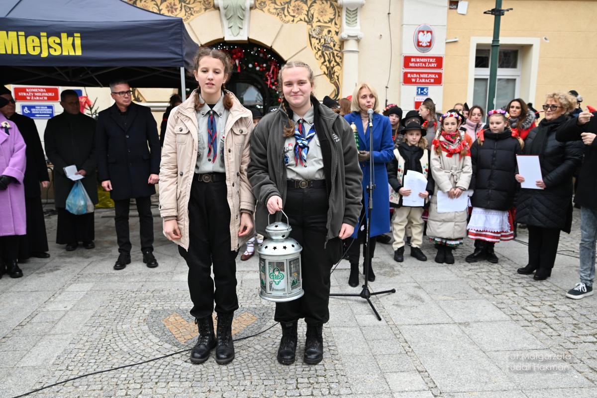 Życzenia spokojnych świąt i szczęśliwego nowego roku złożyła wszystkim burmistrz miasta Danuta Madej, która odebrała od żarskich harcerzy światełko betlejemskie. Wspólna modlitwę poprowadził ksiądz dziekan Tadeusz Masłowski, a wiceburmistrz Patryk Faliński serwował wspaniałe wigilijne potrawy, po które ustawiła się długa kolejka.