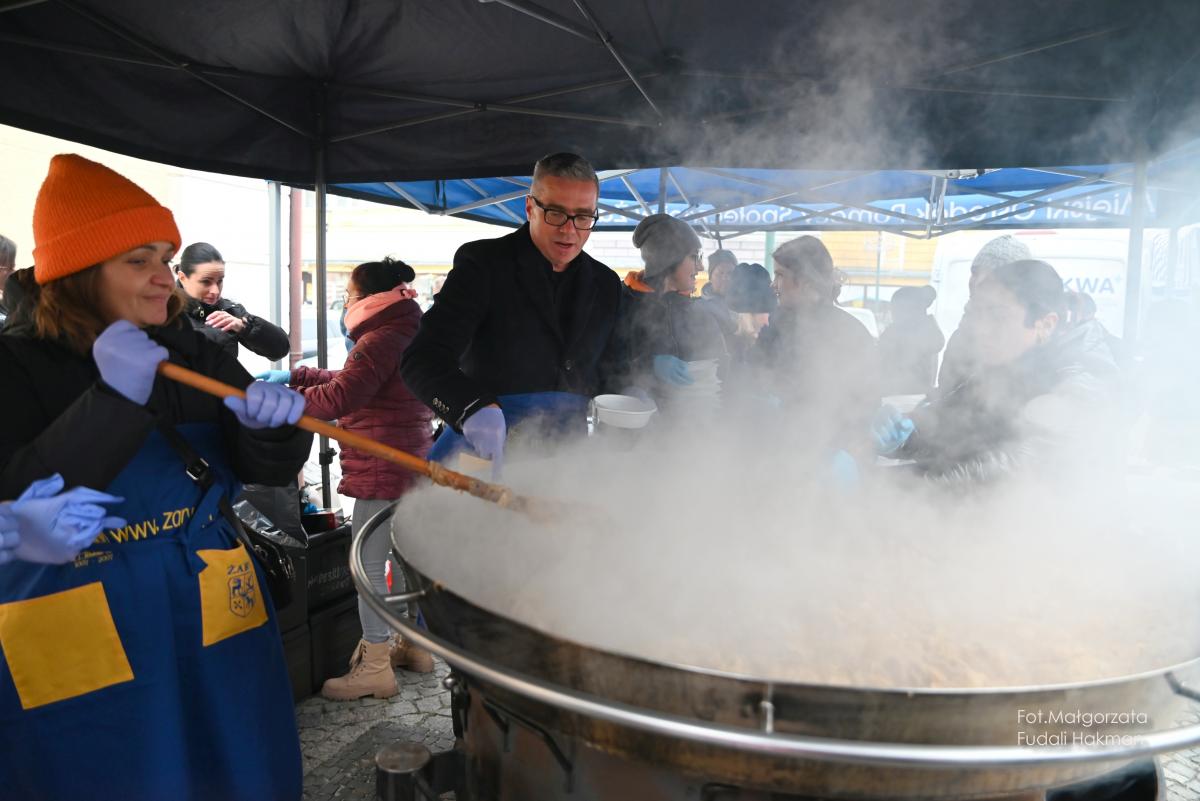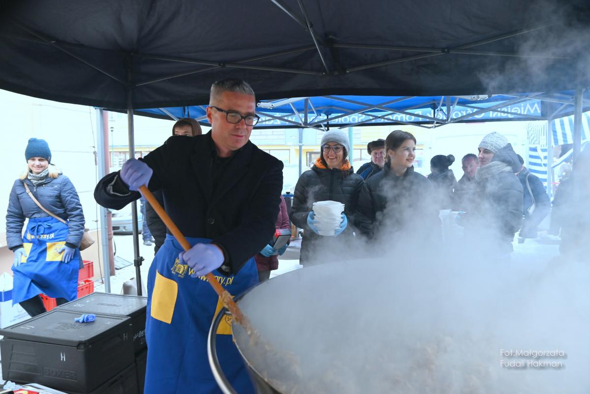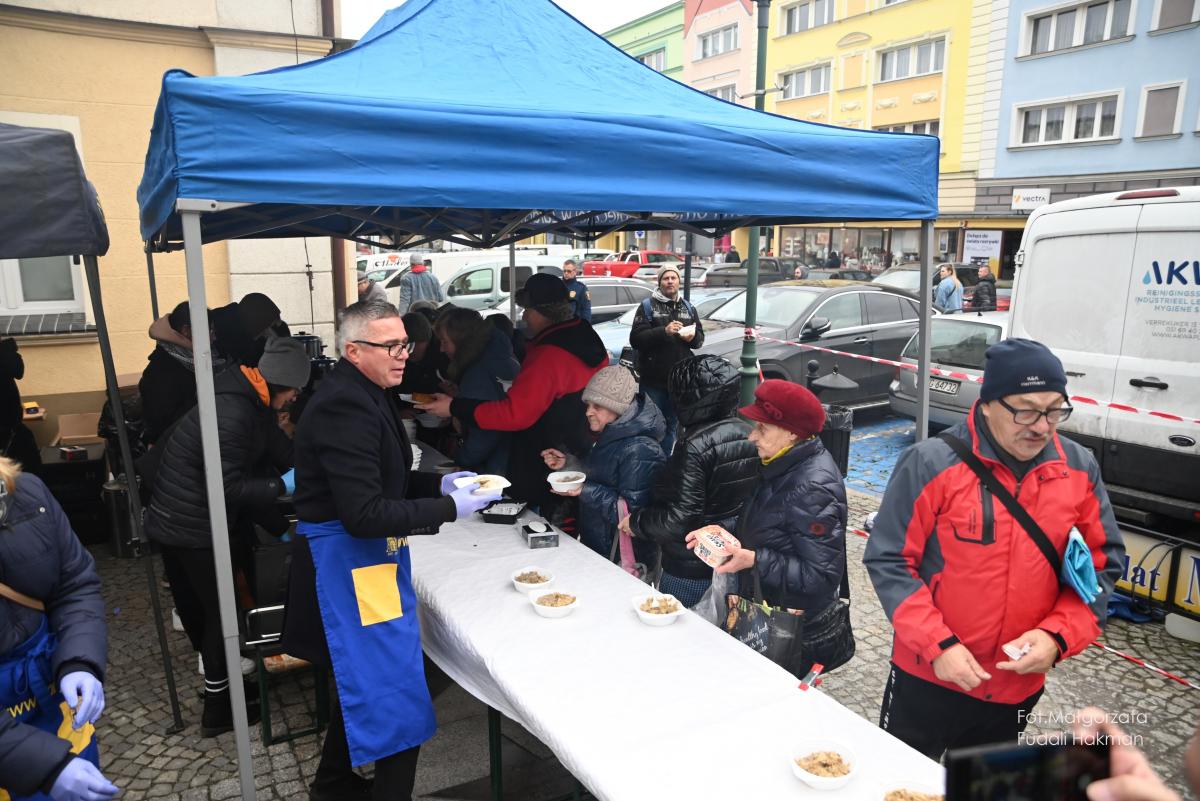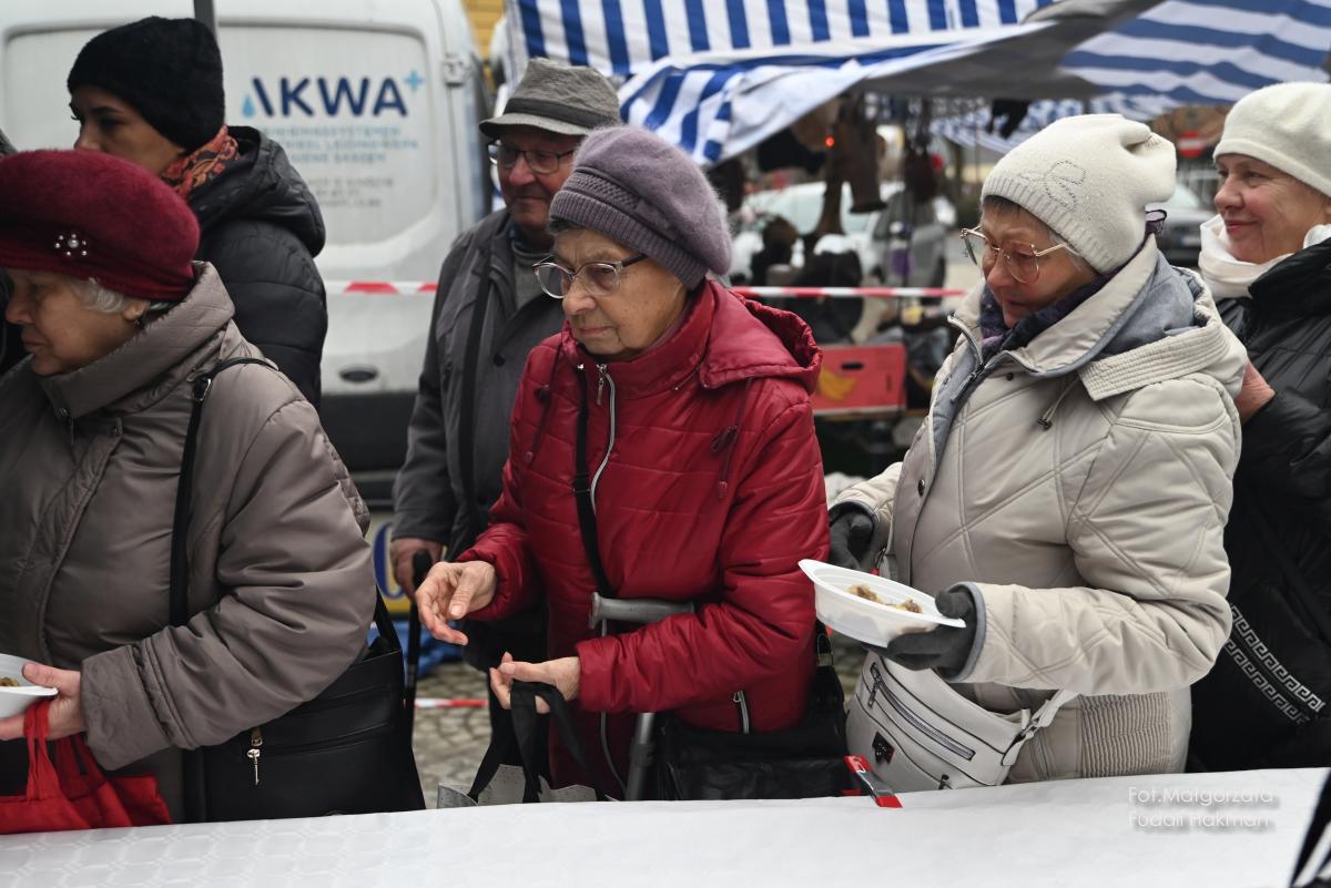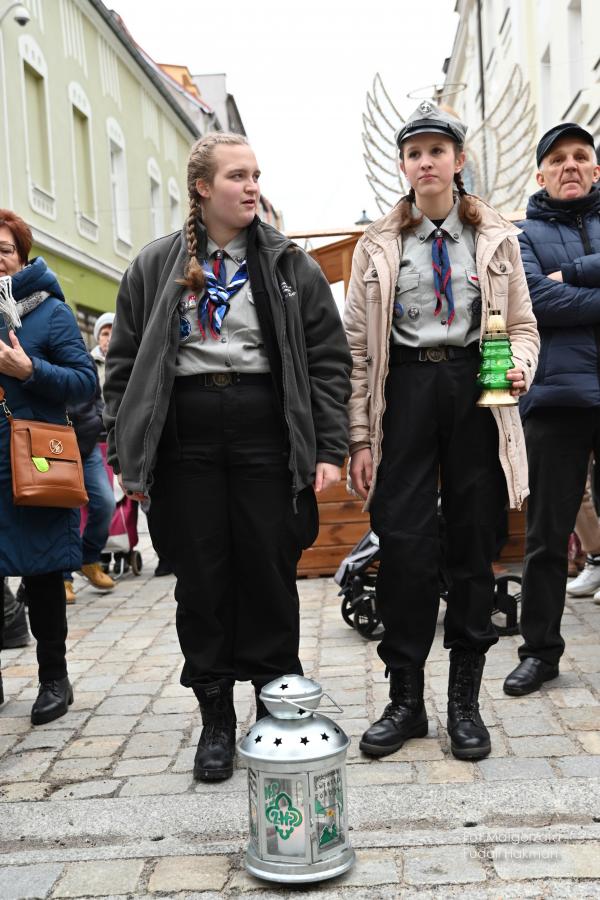 Życzenia spokojnych świąt i szczęśliwego nowego roku złożyła wszystkim burmistrz miasta Danuta Madej, która odebrała od żarskich harcerzy światełko betlejemskie. Wspólna modlitwę poprowadził ksiądz dziekan Tadeusz Masłowski, a wiceburmistrz Patryk Faliński serwował wspaniałe wigilijne potrawy, po które ustawiła się długa kolejka.