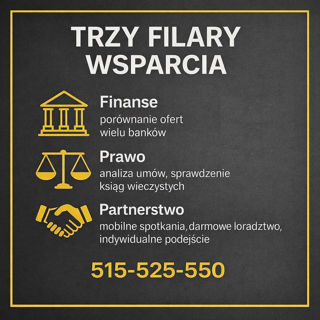 – profesjonalizm – znamy się nie tylko na finansach. Mamy również ogromną wiedzę prawną dotyczącą kwestii transakcyjnych, nieruchomości, prawa bankowego. Wiele spraw z naszą pomocą będzie dla Ciebie dużo łatwiejszych. A wiele z nich, które wcześniej Ciebie blokowały spróbujemy rozwiązać. Nasze wieloletnie doświadczenie pokazało nam, że udaje się często znaleźć rozwiązania dla sytuacji które inni określili jako beznadziejne. Kompleksowa wiedza i doświadczenie dotyczące nieruchomości jest szczególnie istotna w przypadku kredytów hipotecznych. Dzięki naszemu wsparciu nasi klienci otrzymywali kredyty pomimo wcześniejszych nieudanych prób. Jeśli wiec zależy Tobie na kompleksowej obsłudze – a nie tylko na wyliczeniu zdolności kredytowej – zapraszamy do nas.