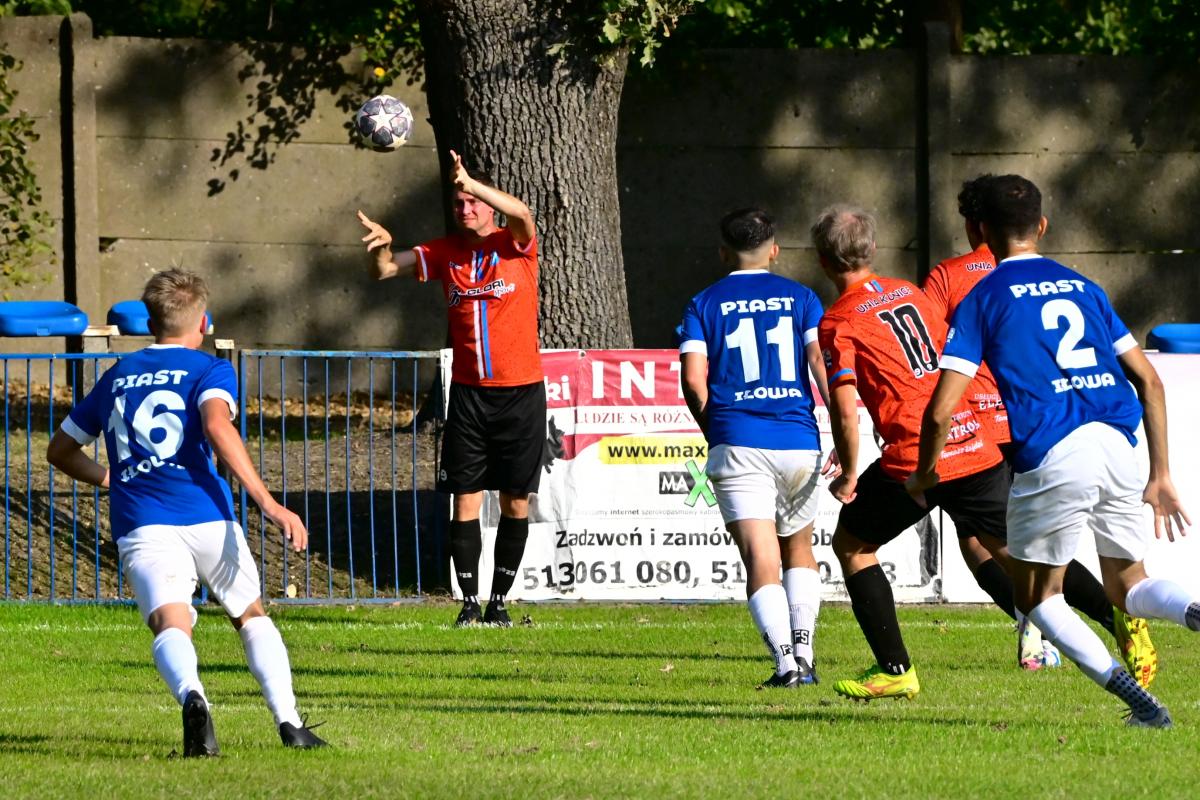 Choć pierwsza połowa była w miarę wyrównana, to gra obu drużyn nie powalała. Goście ustawieni zbyt asekuracyjnie, nie stwarzali pod bramką Unii zbyt wielu sytuacji, a podopieczni Jarka Gada także nie kwapili się do spektakularnych akcji, można nawet zaryzykować twierdzenie, że nie bardzo chciało się kuniczanom grać. W piłkę. Niemrawe próby ofensywnych zagrań, czyli bardzo niecelne podania do Konrada Pluty na skrzydle, żeby ewidentnie dostał zapalenia płuc, często lądowały na aucie, a dojście do pozycji strzeleckiej w środku pola graniczyło z cudem. Zrywy Jarosława Gada były tylko łabędzim śpiewem, bo grający trener, znany ze swoich umiejętności dryblerskich, był pieczołowicie pilnowany przez Mateusza Górala i Sławka Wdowiaka, którzy nie pozwolili Gadziowi na żadne szaleństwa. Mimo że na papierze lepiej prezentowali się iłowianie to wynik do 41 minuty był remisowy. Dopiero wtedy kapitan Piasta wpakował w końcu futbolówkę do bramki Szymona Słodkiego. Na przerwę przyjezdni schodzili już w lepszych humorach, za to kuniczanie mieli „trudną” rozmowę w szatni.