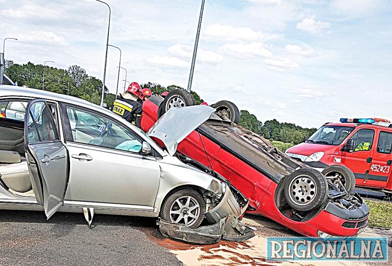 Zderzenie z dachowaniem – tak skończyło się wymuszenie pierwszeństwa przez kierowcę audi na obwodnicy Lubska w niedzielę (26.05.), kilka minut po godz. 15.