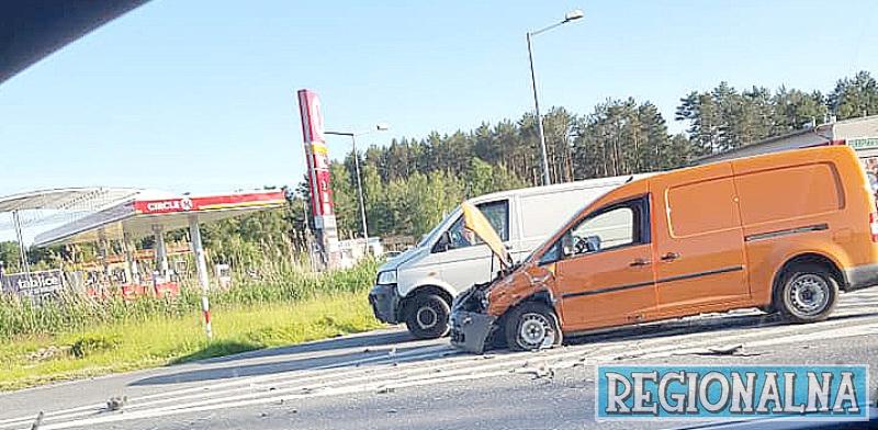 Volkswagen caddy, citroen i volkswagen transporter zderzyły się przy stacji paliw w Królowie (30.05.).