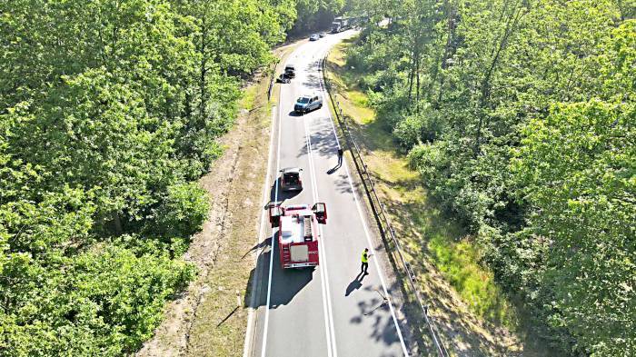 – Kierowca ze złamaną prawą nogą i barkiem trafił na SOR 105. Szpitala Wojskowego w Żarach – informuje Ryszard Smyk, szef pogotowia ratunkowego.