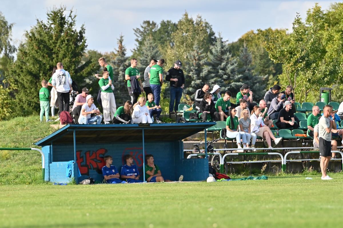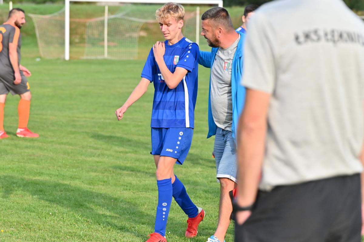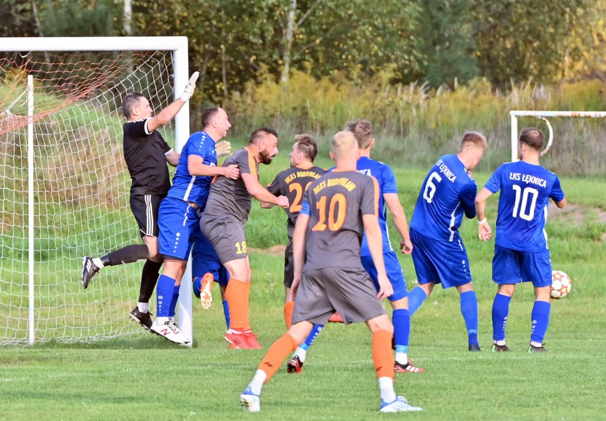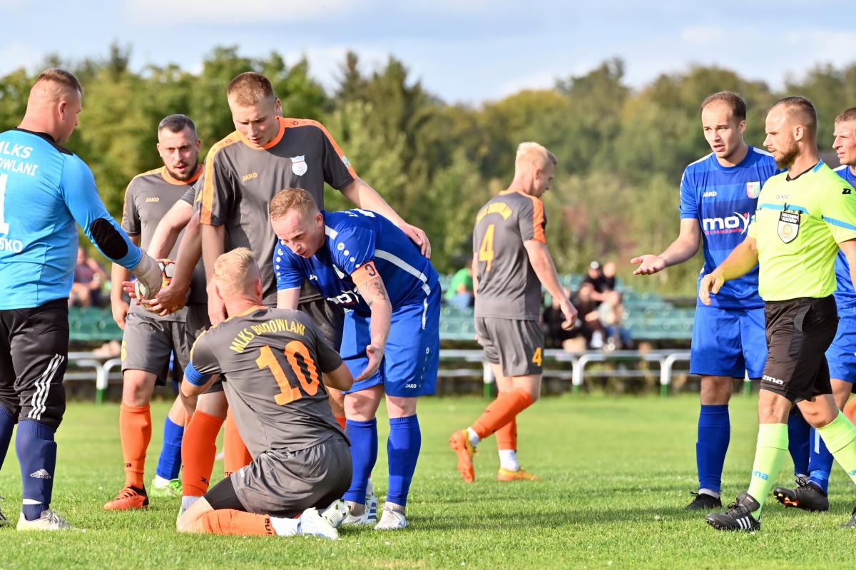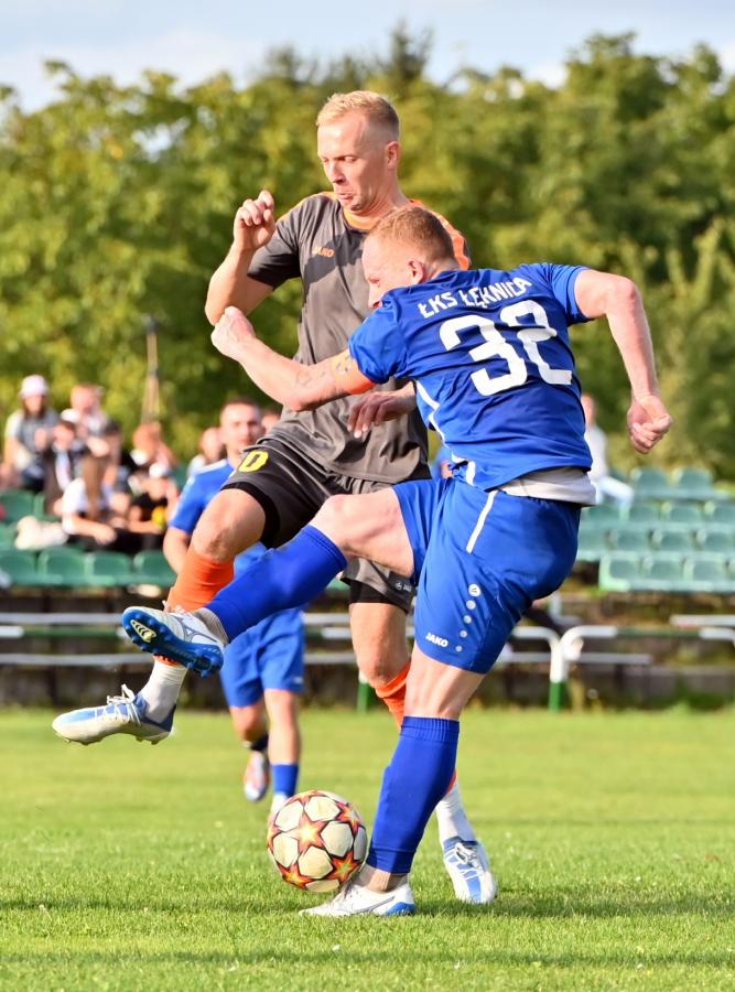 Mecz zaczął się bowiem do szybkiego gonga, którego Budowlani sprzedali miejscowym już w 4. minucie. Patryk Skrzypczak dopadł do piłki odbitej przez Marcina Kozdronia i wspaniałym strzałem umieścił piłkę siatce, dając w ten sposób sygnał do wytężonej walki w dalszej części meczu, bo przejezdni postanowili się postawić i świetnie rozpoczęli, ale im dalej w las tym …większe problemy. W 28. minucie kapitan zespołu, Jarosław Owsiany doprowadził do wyrównania, ale lubszczanie jeszcze się trzymali. Niestety pod koniec pierwszej połowy zaczęli się rozpaczliwie rozglądać za butlami z tlenem, bo niewątpliwie zostawili trochę zdrowia na łęknickiej murawie. Tuż przed końcem pierwszej części do bramki ponownie trafił Owsiany, a zrobił to w kuriozalny sposób, bo po jego soczystym strzale futbolówka odbiła się od Marcina Piecha i wylądowała w siatce gości. Można zatem zaryzykować stwierdzenie, że „Boniek” strzelił gola „Żwirkiem”.