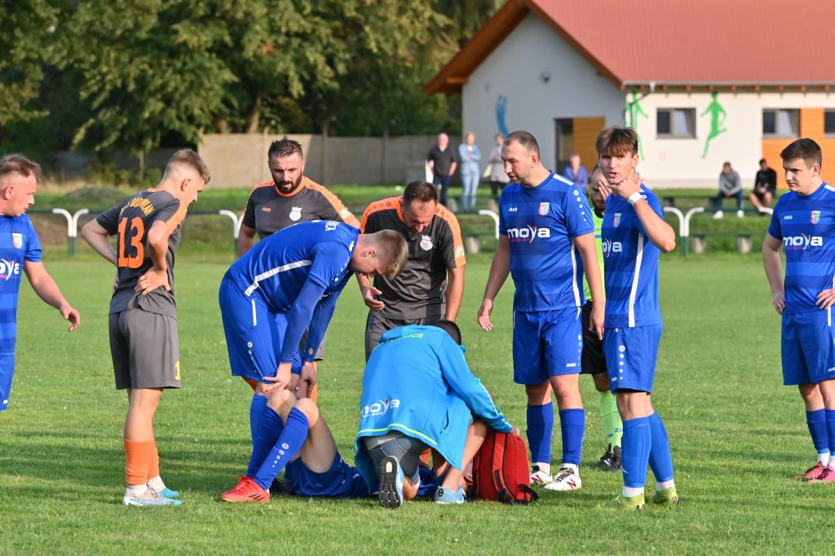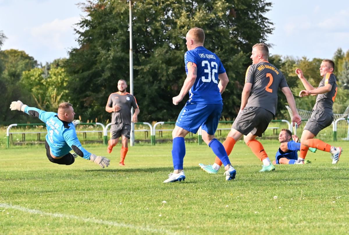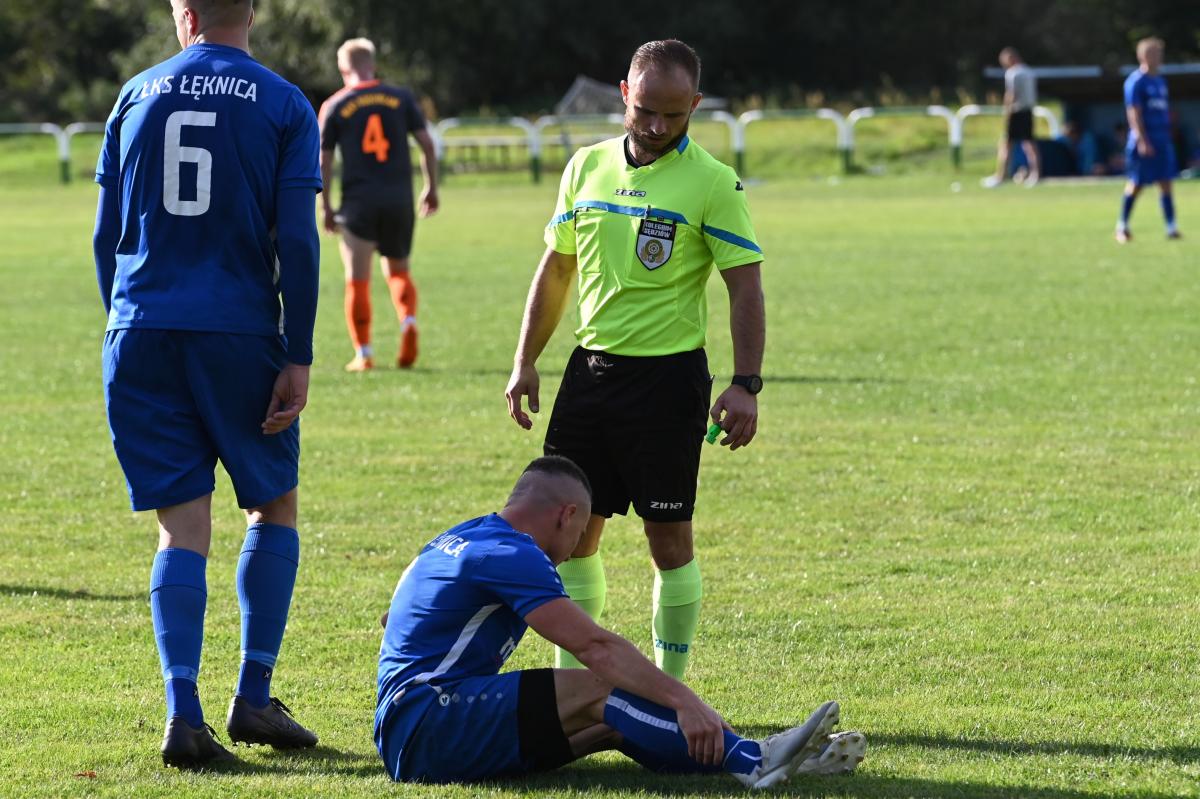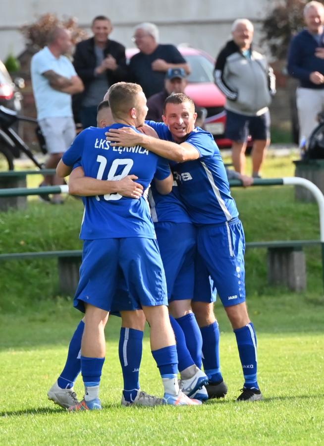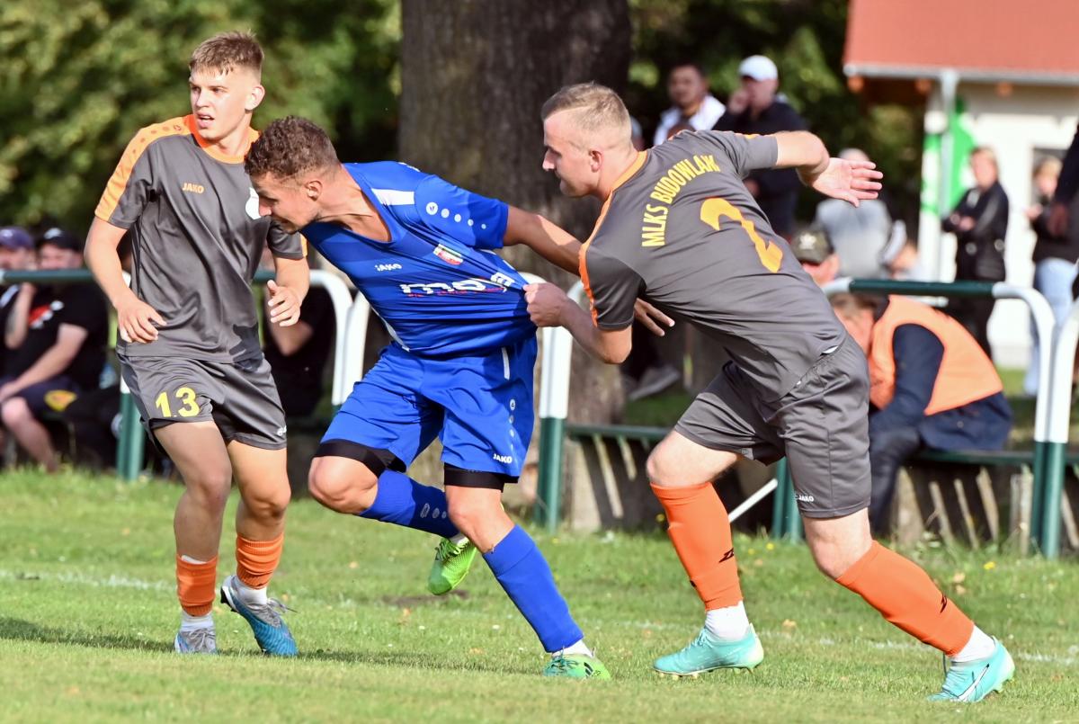 Mecz zaczął się bowiem do szybkiego gonga, którego Budowlani sprzedali miejscowym już w 4. minucie. Patryk Skrzypczak dopadł do piłki odbitej przez Marcina Kozdronia i wspaniałym strzałem umieścił piłkę siatce, dając w ten sposób sygnał do wytężonej walki w dalszej części meczu, bo przejezdni postanowili się postawić i świetnie rozpoczęli, ale im dalej w las tym …większe problemy. W 28. minucie kapitan zespołu, Jarosław Owsiany doprowadził do wyrównania, ale lubszczanie jeszcze się trzymali. Niestety pod koniec pierwszej połowy zaczęli się rozpaczliwie rozglądać za butlami z tlenem, bo niewątpliwie zostawili trochę zdrowia na łęknickiej murawie. Tuż przed końcem pierwszej części do bramki ponownie trafił Owsiany, a zrobił to w kuriozalny sposób, bo po jego soczystym strzale futbolówka odbiła się od Marcina Piecha i wylądowała w siatce gości. Można zatem zaryzykować stwierdzenie, że „Boniek” strzelił gola „Żwirkiem”.