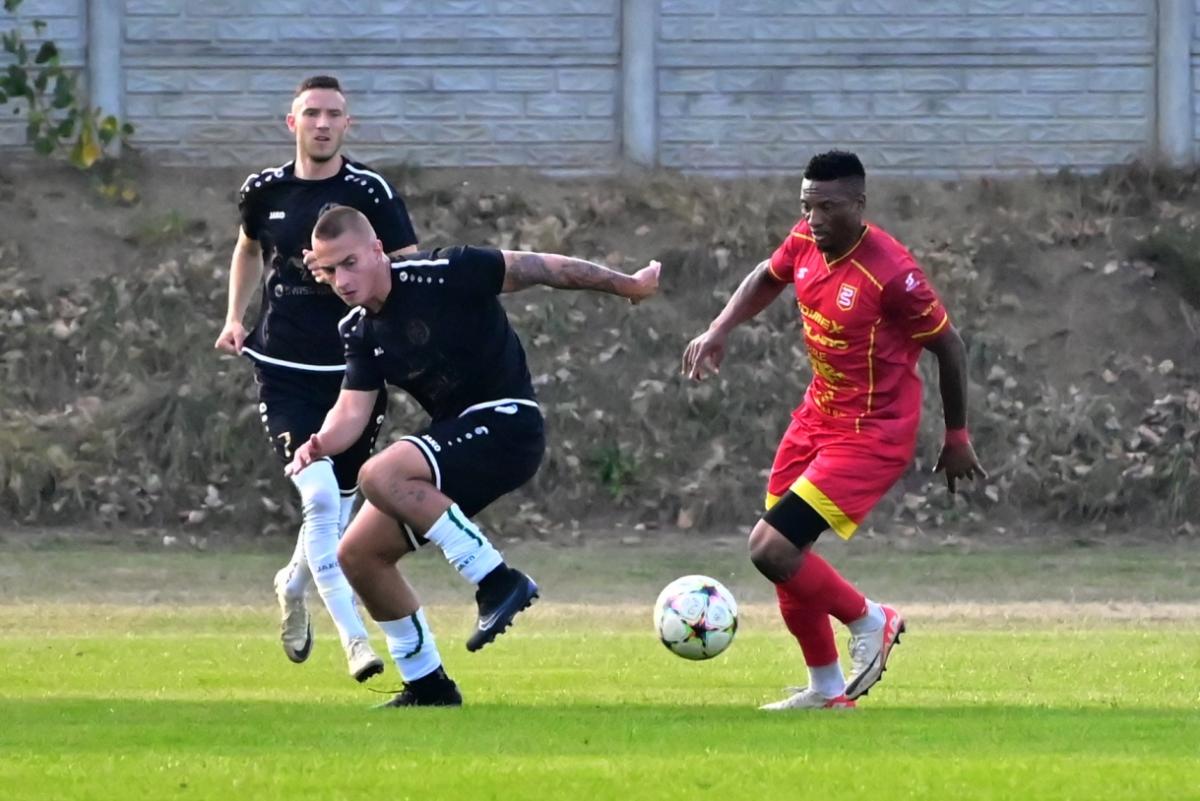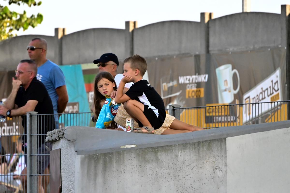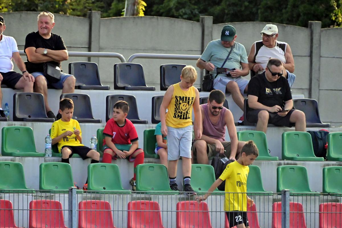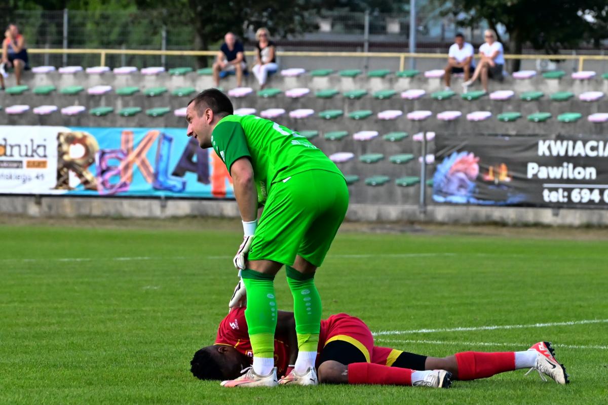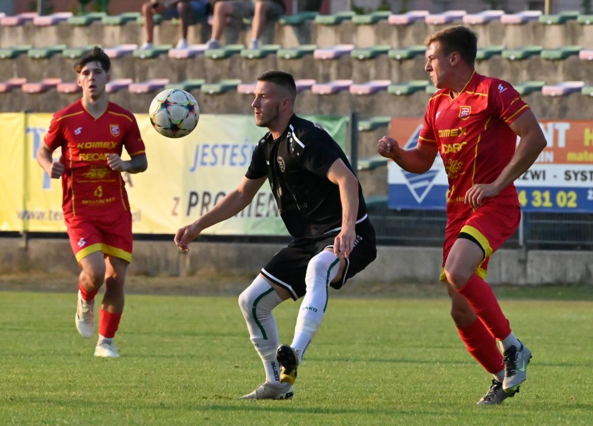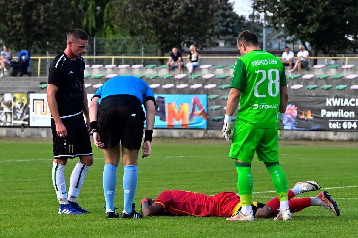 Bardzo słabo wyglądała gra obu ekip w pierwszej połowie tego za przeproszeniem „widowiska”. Akcji bramkowych jak na lekarstwo, a emocje jak na wycieczce emerytów do Kluczborka. Można się było opalać lub uczestniczyć w jednym z wielu paneli dyskusyjnych, które odbywały się na trybunach pt. Dlaczego jest tak fatalnie? lub: Dlaczego jest jeszcze gorzej? Jednym słowa nuda. A poziom nawet nie B-klasy, bo tam zawodnicy chociaż dają z siebie wszystko, a w tym meczu zabrakło sił, umiejętności, serca i chęci. Że o zwykłym szacunku dla oglądających nie wspomnę. Momentami wyglądało to komicznie, bo piłkarze obu zespołów ustawili się naprzeciwko siebie na swoich połowach i czekali, żeby ktoś zaatakował. A nikt jakoś się do tego nie kwapił. Dlatego do przerwy Promień miał jedną sytuację, po której mogła paść bramka, ale Bartek Pruchniak z metra trafił w interweniującego rozpaczliwie obrońcę. Goście także odwdzięczyli się podobną akcją, w której bohaterem został Jacek Fleszar, odbijając piłkę zmierzającą nieuchronnie do siatki gospodarzy. Te dwie akcje i czerwona kartka dla Mateusza Reimanna za odrzucenie piłki to jedyne wydarzenia, które zasługują na wspomnienie.