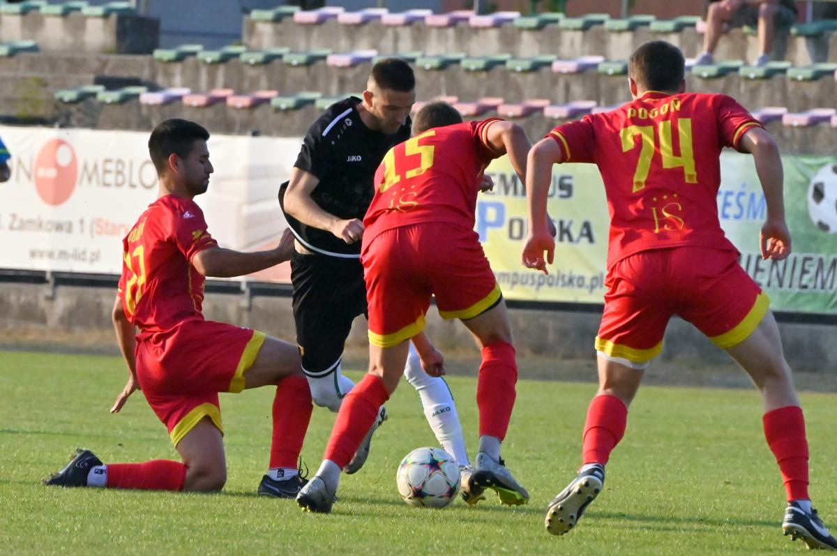 Pogoń Świebodzin, przynajmniej na papierze, ma o wiele lepszy skład osobowy, jednak do Żar nie przyjechali w swoim najmocniejszym ustawieniu. Gospodarze także wyszli na murawę w bardzo eksperymentalnym zestawieniu. W linii obrony zabrakło dwóch podstawowych stoperów, którzy dotąd stanowili o sile żarskiej defensywy. Bartosz Suski nie figurował w ogóle w kadrze na ten mecz, a Karol Łyczko od niepamiętnych czasów nie znalazł się w podstawowej jedenastce. Doświadczony gracz całą sytuację skomentował jednym zdaniem: Teraz usiadłem, bo mu(trenerowi przyp. red.) osa na nosie usiadła. Jeżeli trener miał plan na ten mecz desygnując do gry właśnie tych zawodników, którzy zaczęli mecz od pierwszej minuty, to można z całą pewnością stwierdzić, że pomysł się nie sprawdził.