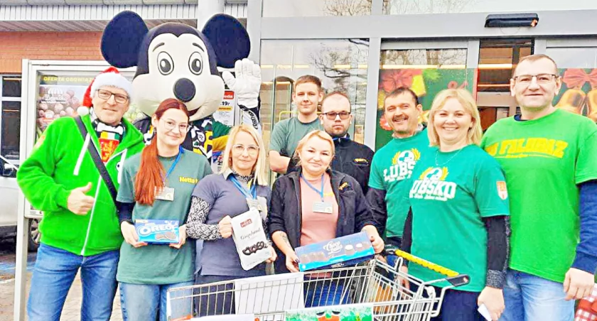 Kibice lubskiego FanClubu Falubaz zebrali słodycze i artykuły spożywcze dla dzieci.