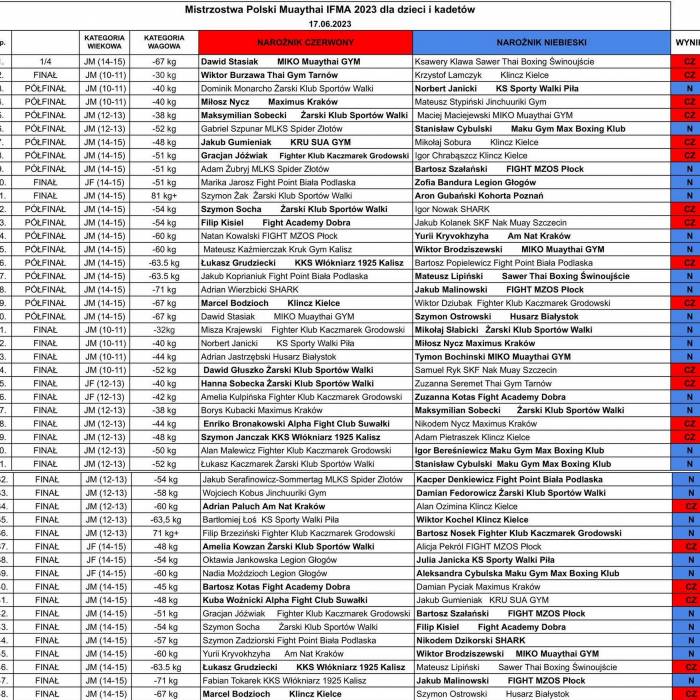 17 czerwca w Powiatowym Centrum Sportu w Żarach odbyły się Mistrzostwa Polski Muaythai IFMA 2023 dla dzieci i kadetów zorganizowany przez Żarski Klub Sportów Walki pod patronatem Polskiego Związku Muaythai.