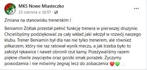 O zmianie trenera MKS poinformował w czwartek (23.06.).