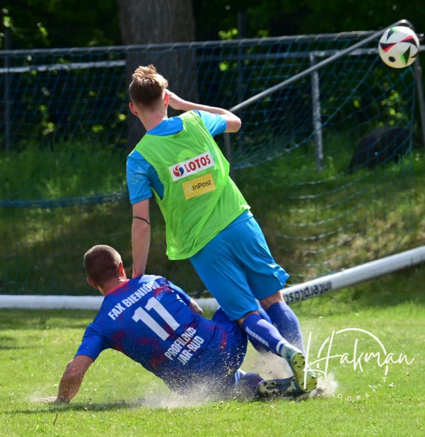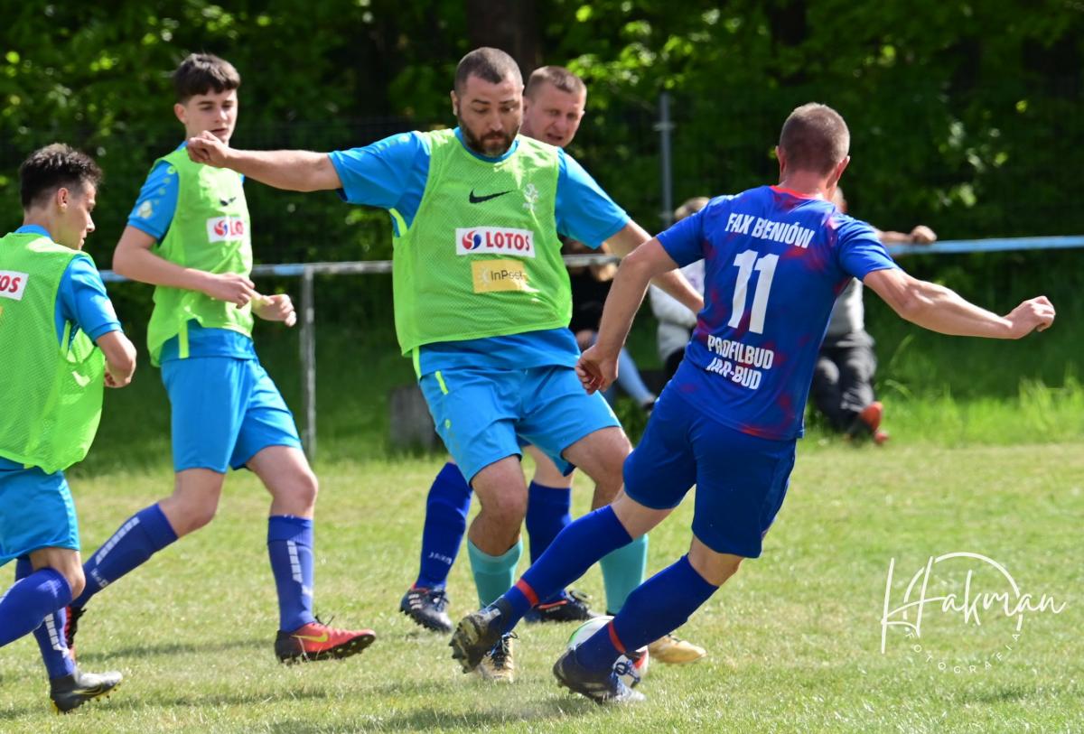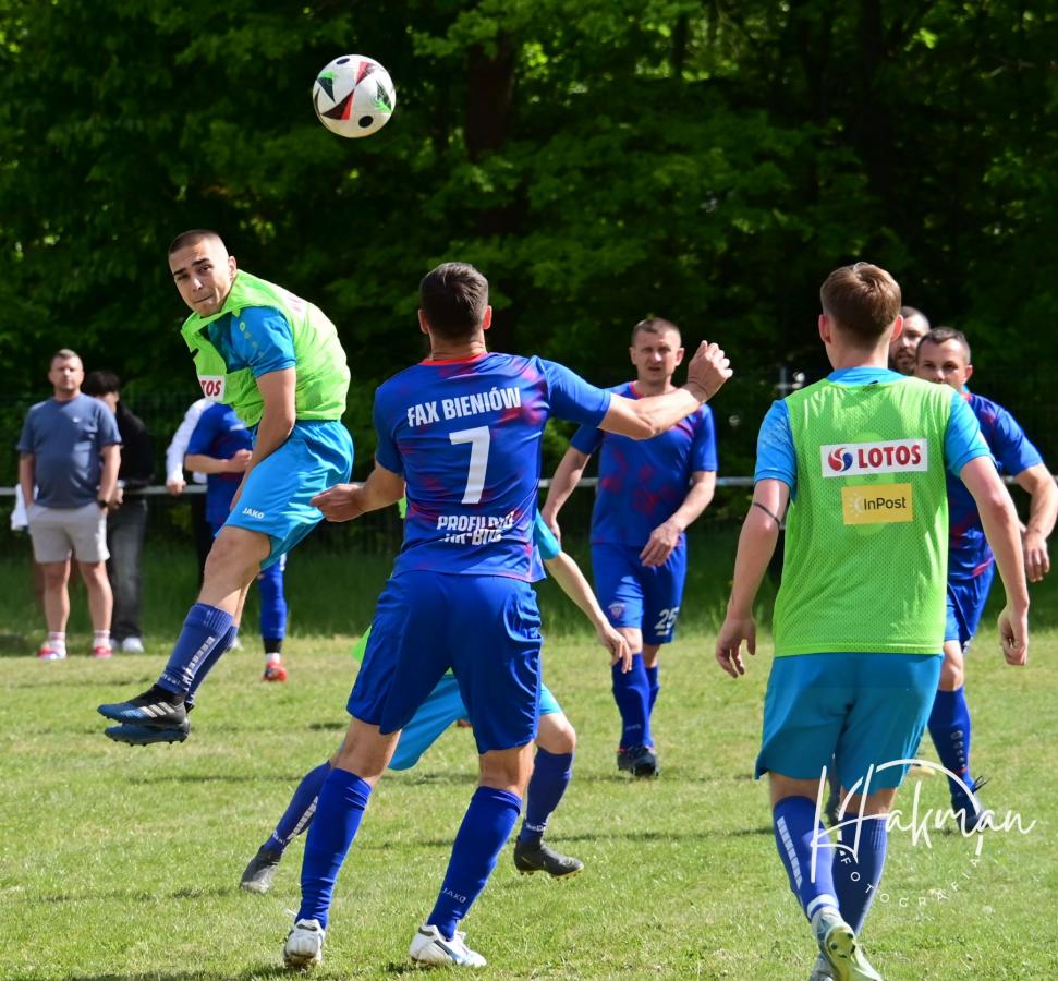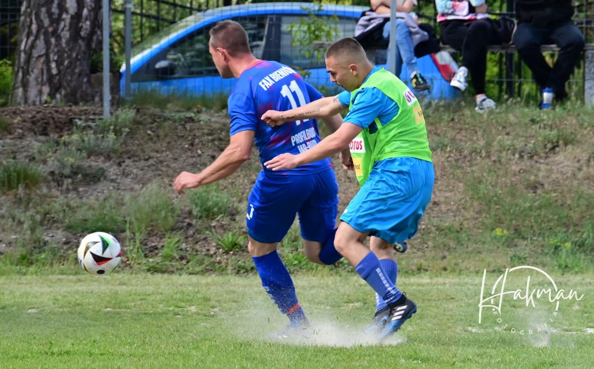 W niedzielne popołudnie, 11 maja, rozegrano 18. kolejkę żarskiej B-klasy. Na boisku, a raczej w piaskownicy w Olbrachtowie Błękitni wysoko przegrali z Faxem Bieniów 0:6. Bramki dla gości strzelili: Wojciech Kochanowski x3, Dariusz Michalewicz, Kamil Rowiński i Krzysztof Krawiec.