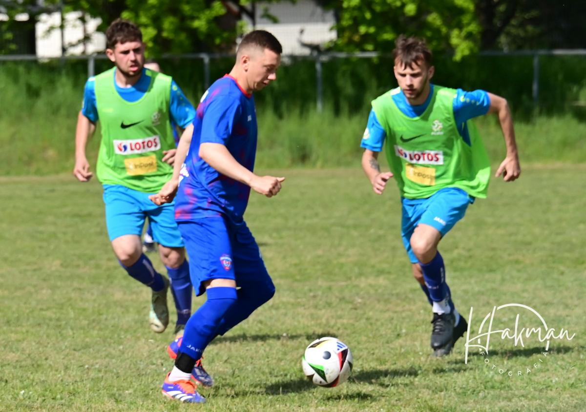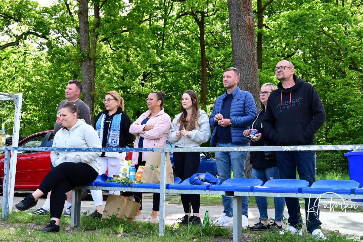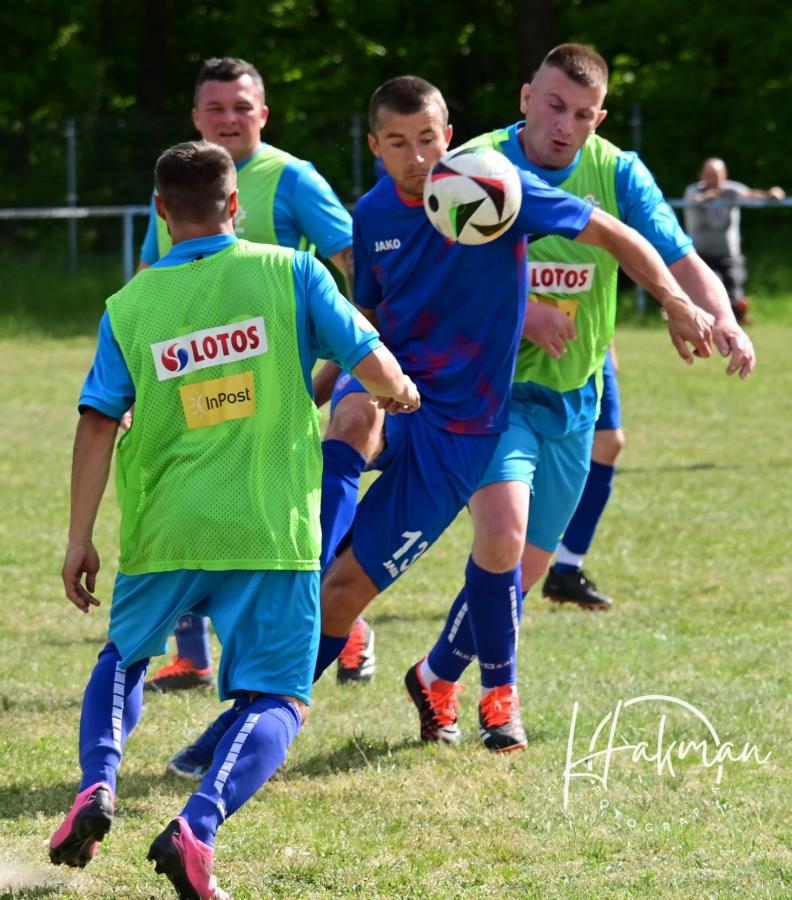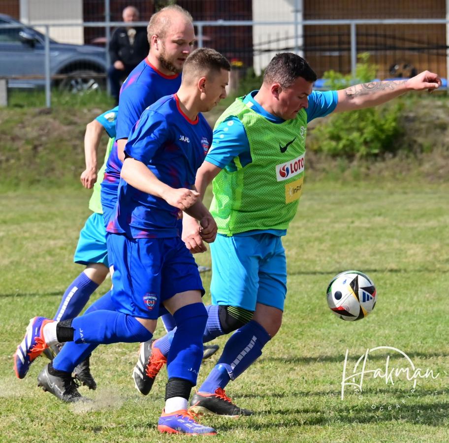 W niedzielne popołudnie, 11 maja, rozegrano 18. kolejkę żarskiej B-klasy. Na boisku, a raczej w piaskownicy w Olbrachtowie Błękitni wysoko przegrali z Faxem Bieniów 0:6. Bramki dla gości strzelili: Wojciech Kochanowski x3, Dariusz Michalewicz, Kamil Rowiński i Krzysztof Krawiec.