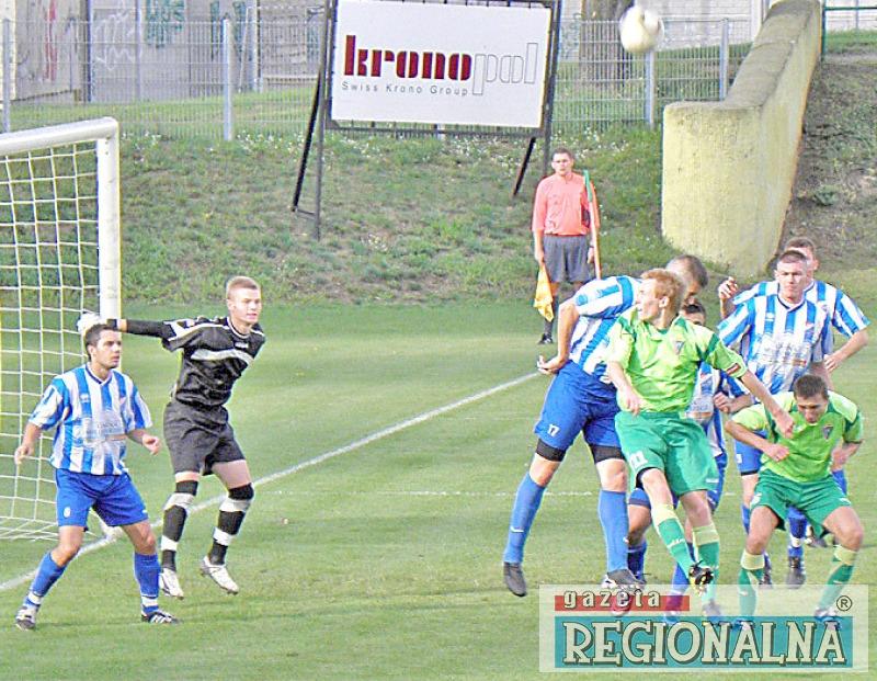 W poprzednim spotkaniu, to żaranie byli stroną przeważająca, prowadzili grę. Goście w całym meczu przeprowadzili cztery groźne akcje, z czego trzy zakończone golami. Teraz miało być inaczej. Już w 5. min na prowadzenie wyszli goście. Jarosław Gad wykorzystał fatalny błąd miejscowych obrońców, przejął piłkę i natychmiast podał ją do wychodzącego na czystą pozycję Gracjana Arkuszewskiego, który dopełnia formalności. Szybko strzelona bramka tylko dodała skrzydeł naszym zawodnikom. Promień  stworzył jeszcze kilka dogodnych sytuacji, ale zawiodła skuteczność. – Po pierwszej połowie powinniśmy prowadzić przynajmniej trzema bramkami. Mieliśmy pięć setek z czego wykorzystaliśmy tylko jedną – podsumował pierwsze 45. minut R. Czepiński.