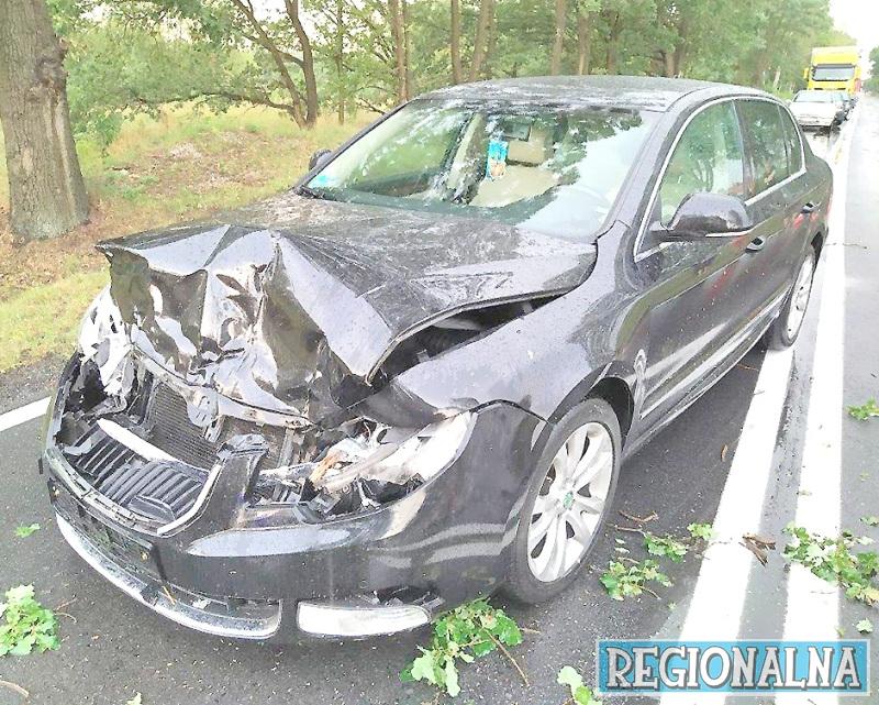 Na jadącą pomiędzy Żarami a Sieniawą Żarska skodę z impetem spadło drzewo. Kompletnie zniszczyło przód auta.