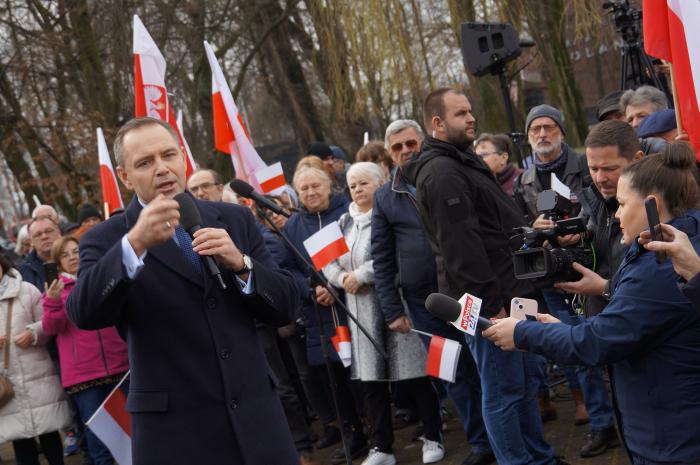 Pierwszy za mikrofon chwycił Grzegorz Maćkowiak, szef klubu radnych w Zielonej Górze i sekretarz lubuskiego PiS.