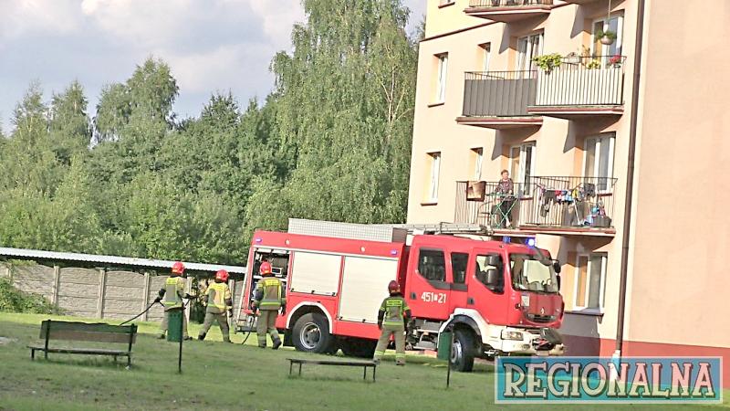 Wszystko wydarzyło się w sobotnie (4.09) popołudnie, tuż po godzinie 17.00. Ogień zauważyli sąsiedzi i zaalarmowali strażaków. W mieszkaniu nie było właścicieli, dlatego strażacy ogień gasili z wysięgnika. Palił się dywanik i pranie. Według strażaków, mogły si8ę zająć od wyrzuconego niedopałka papierosa.