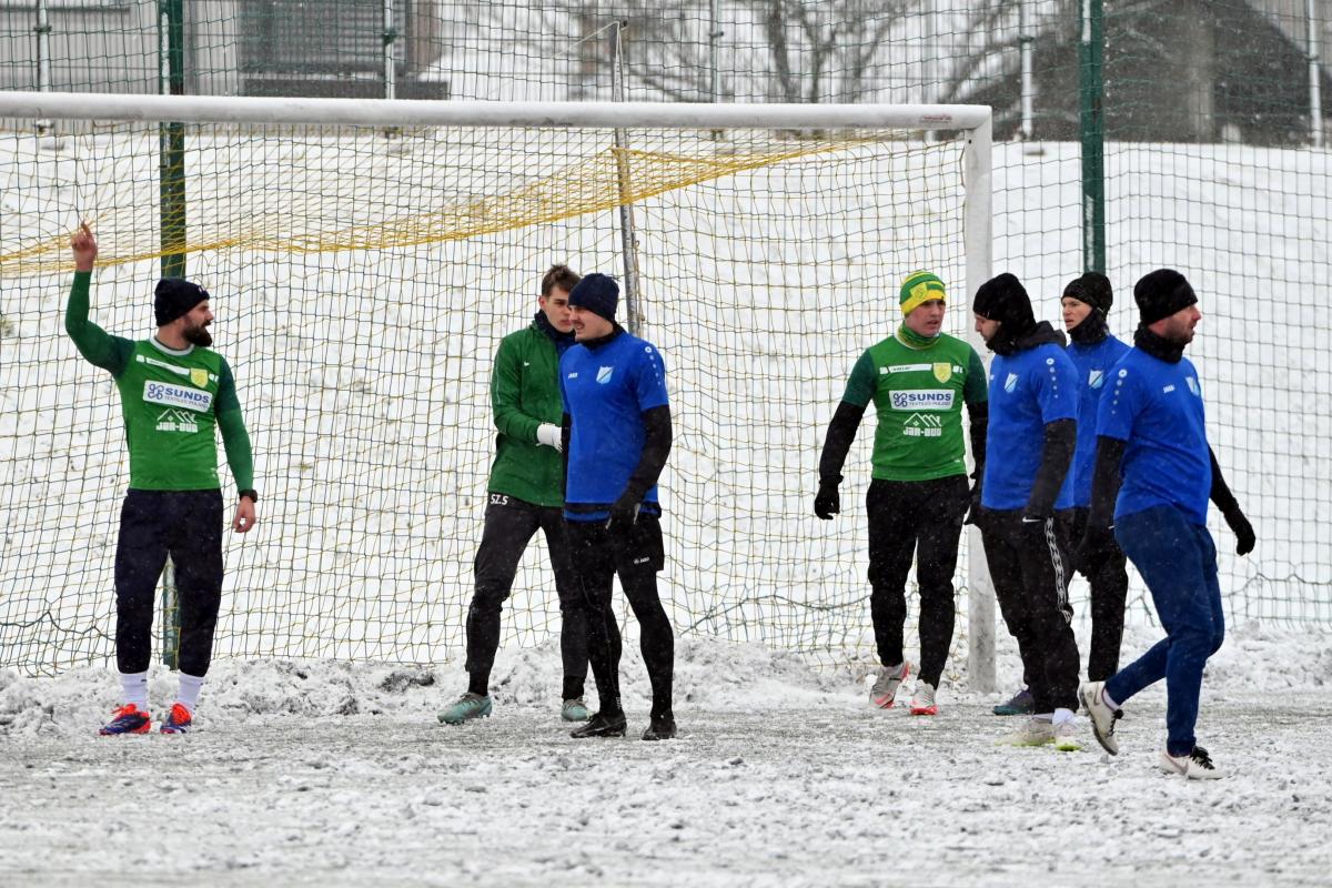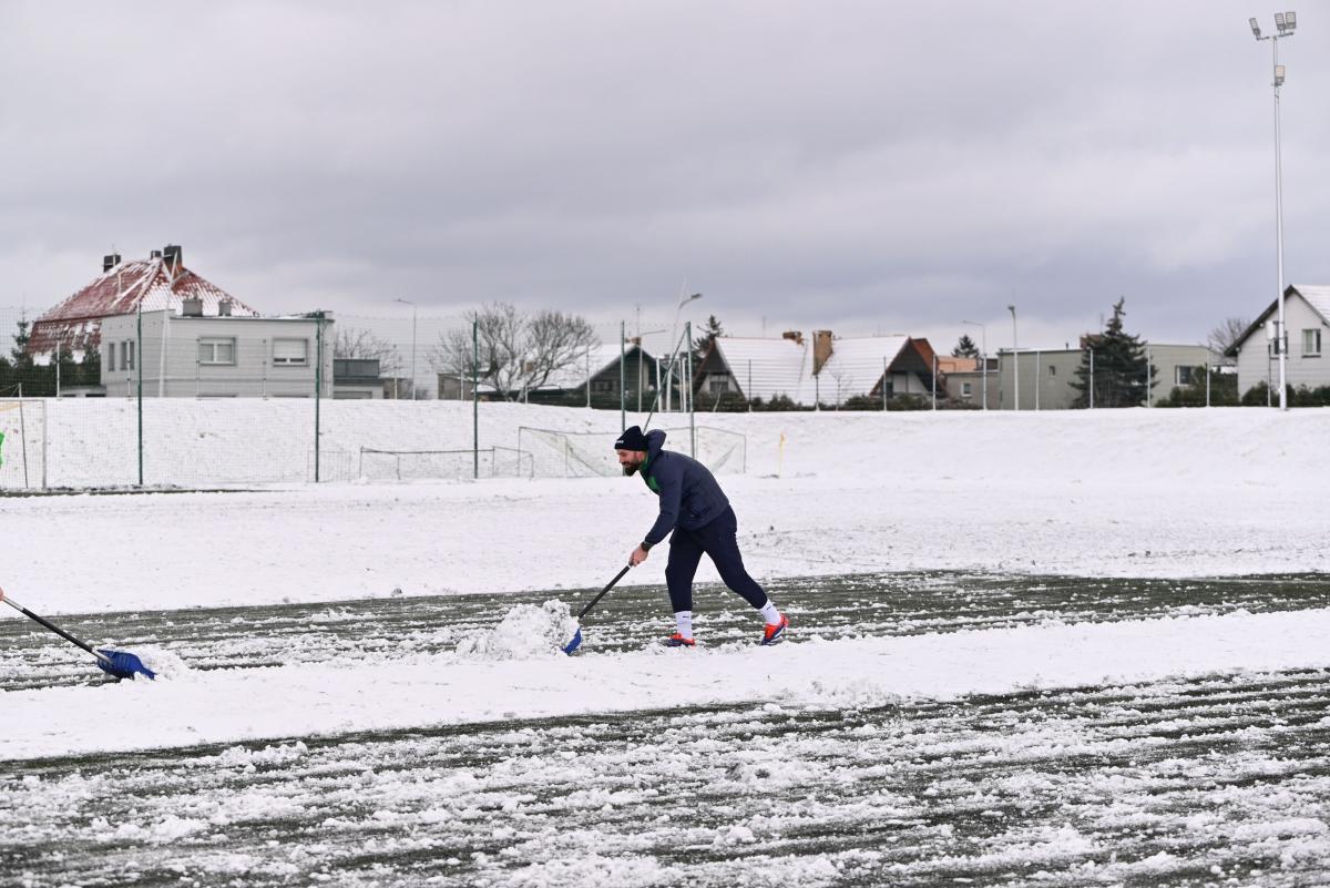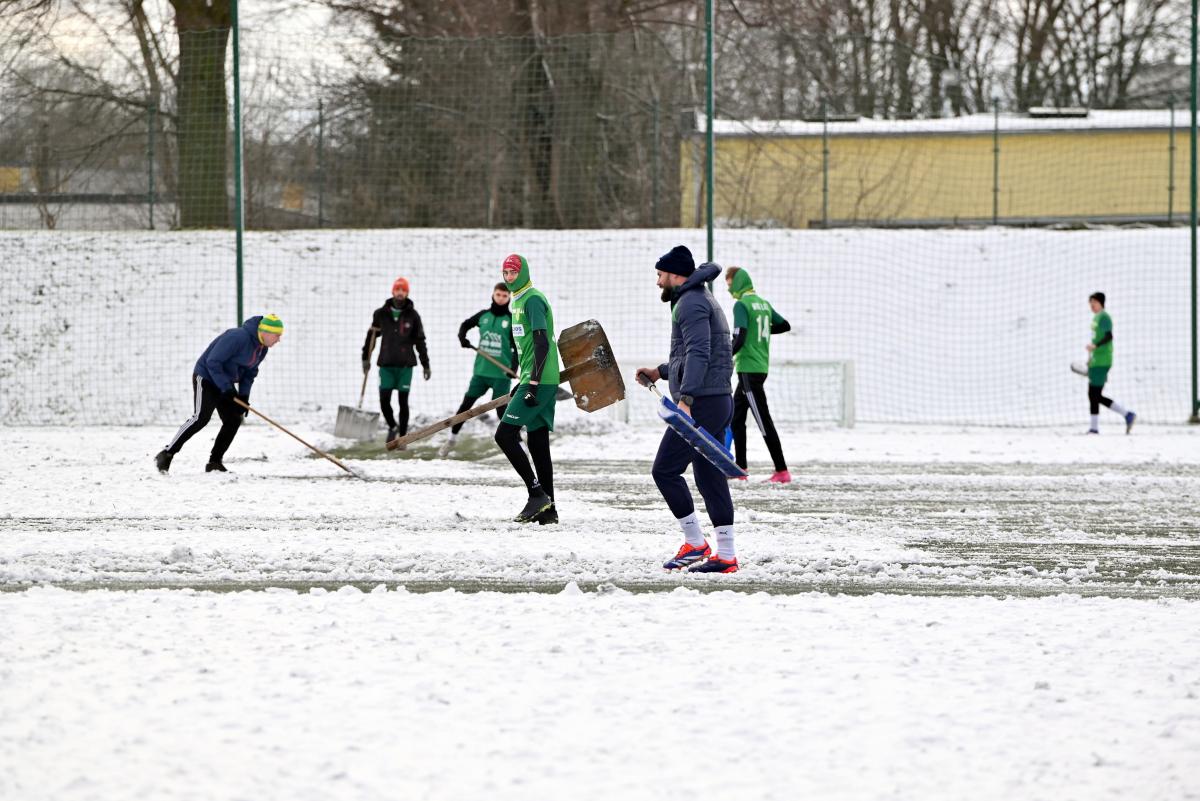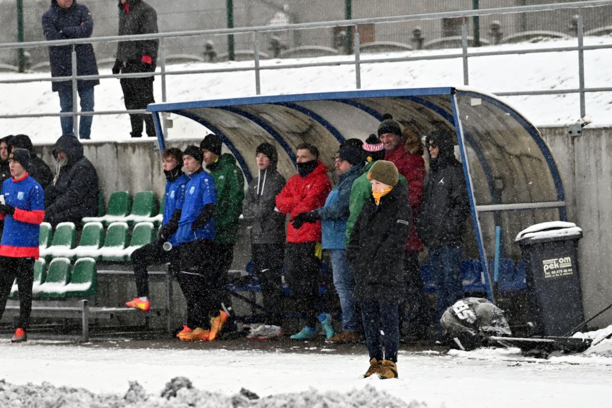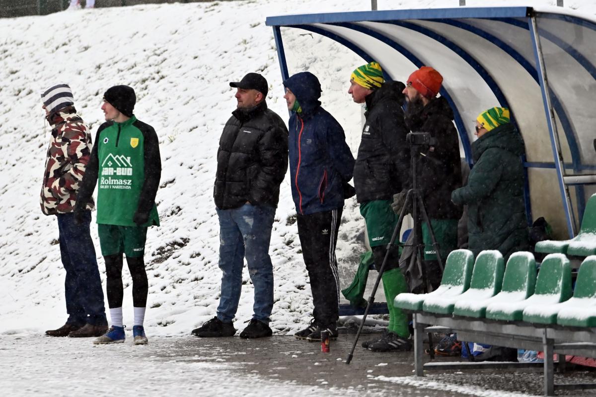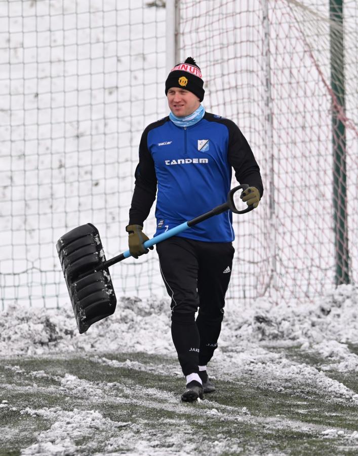 Niestety obie drużyny, żeby rozegrać zaplanowany sparing musiały odśnieżyć sobie boisko, bo opiekujący się okrąglakiem żarski MOSRiW „zapomniał” to zrobić.