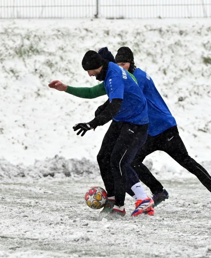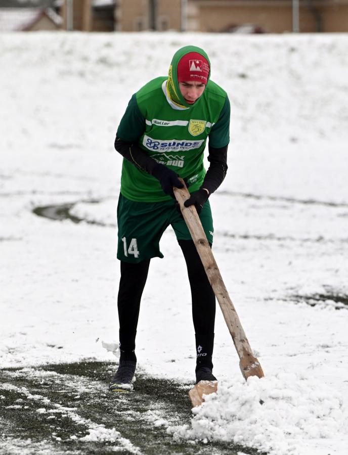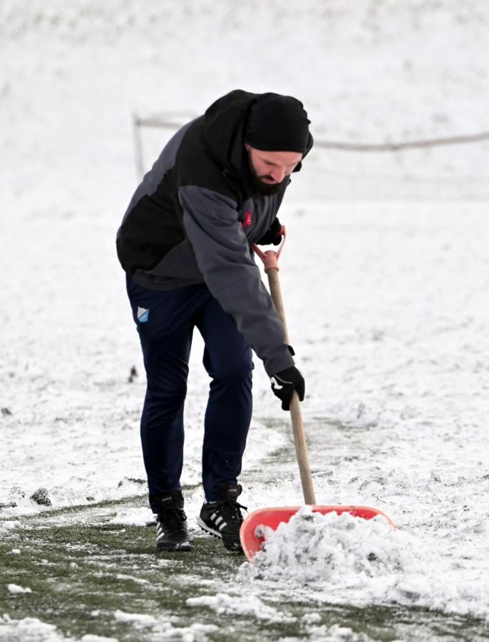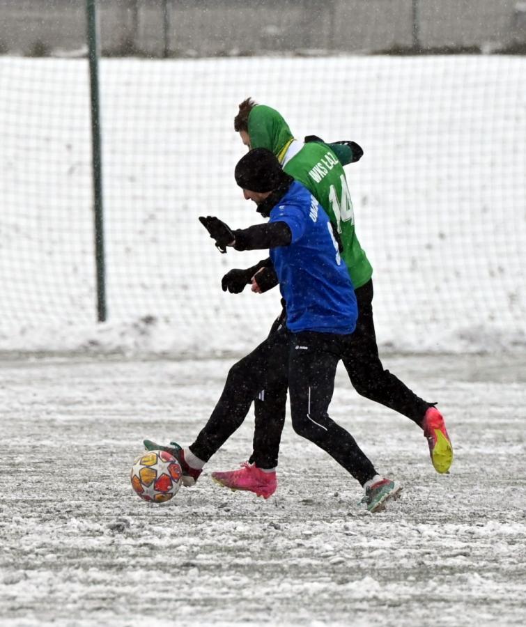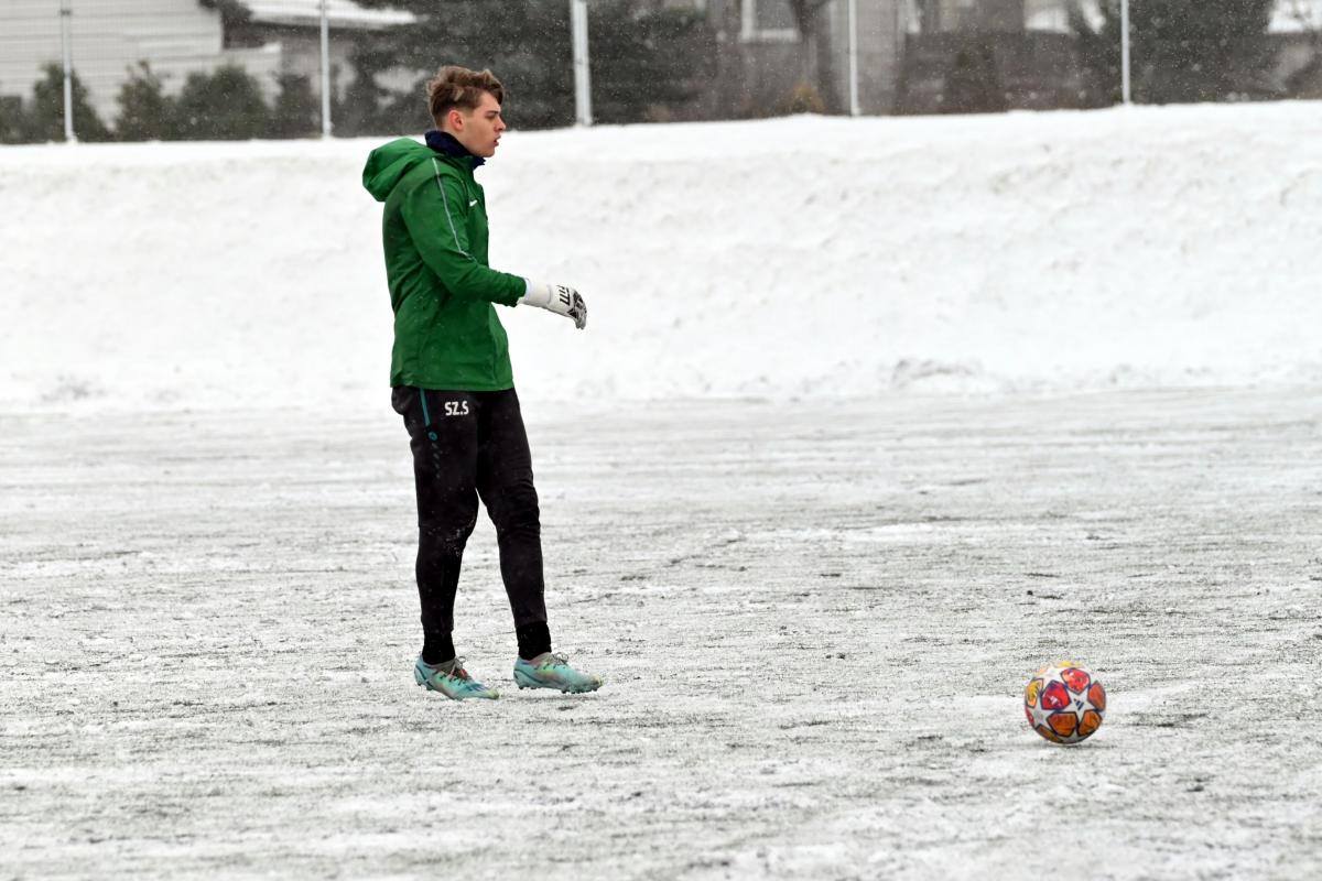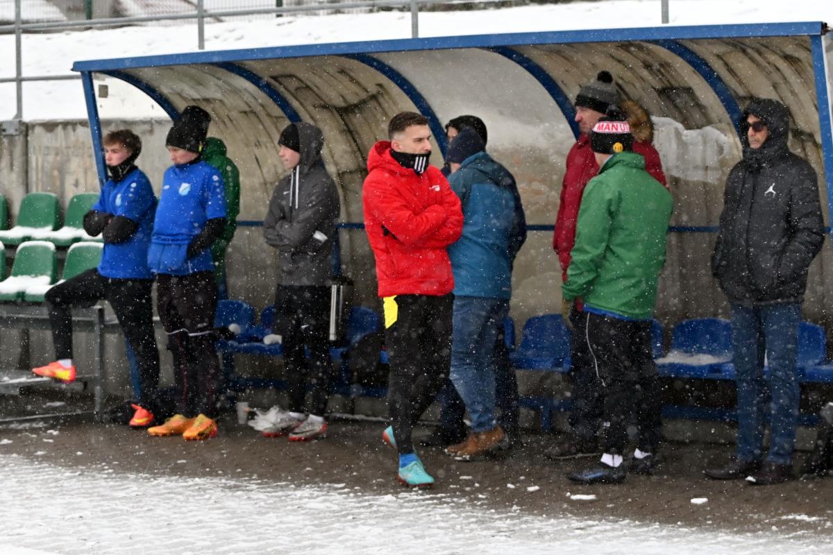 Niestety obie drużyny, żeby rozegrać zaplanowany sparing musiały odśnieżyć sobie boisko, bo opiekujący się okrąglakiem żarski MOSRiW „zapomniał” to zrobić.