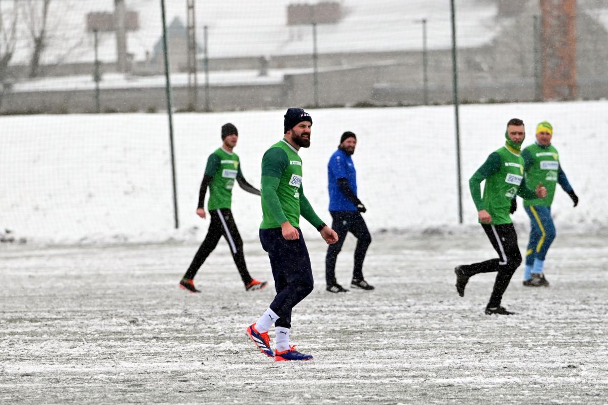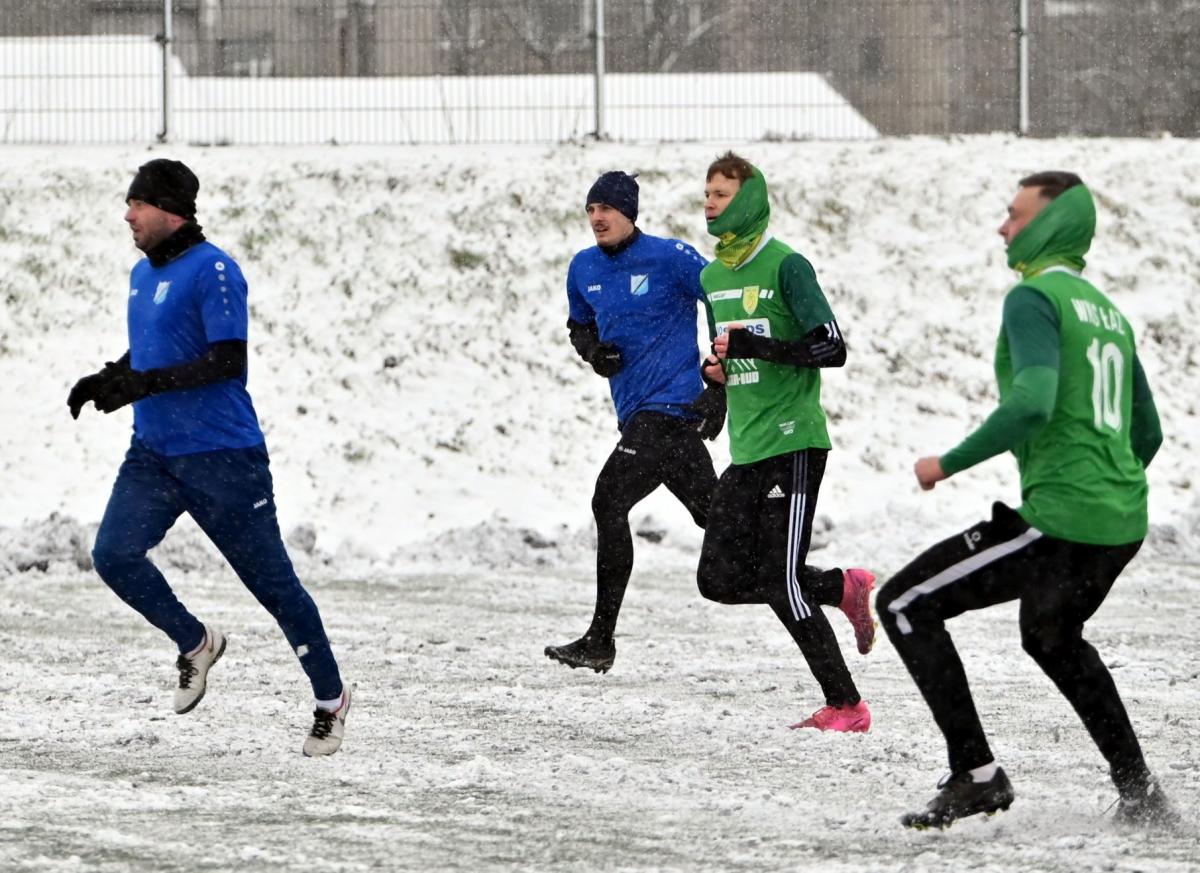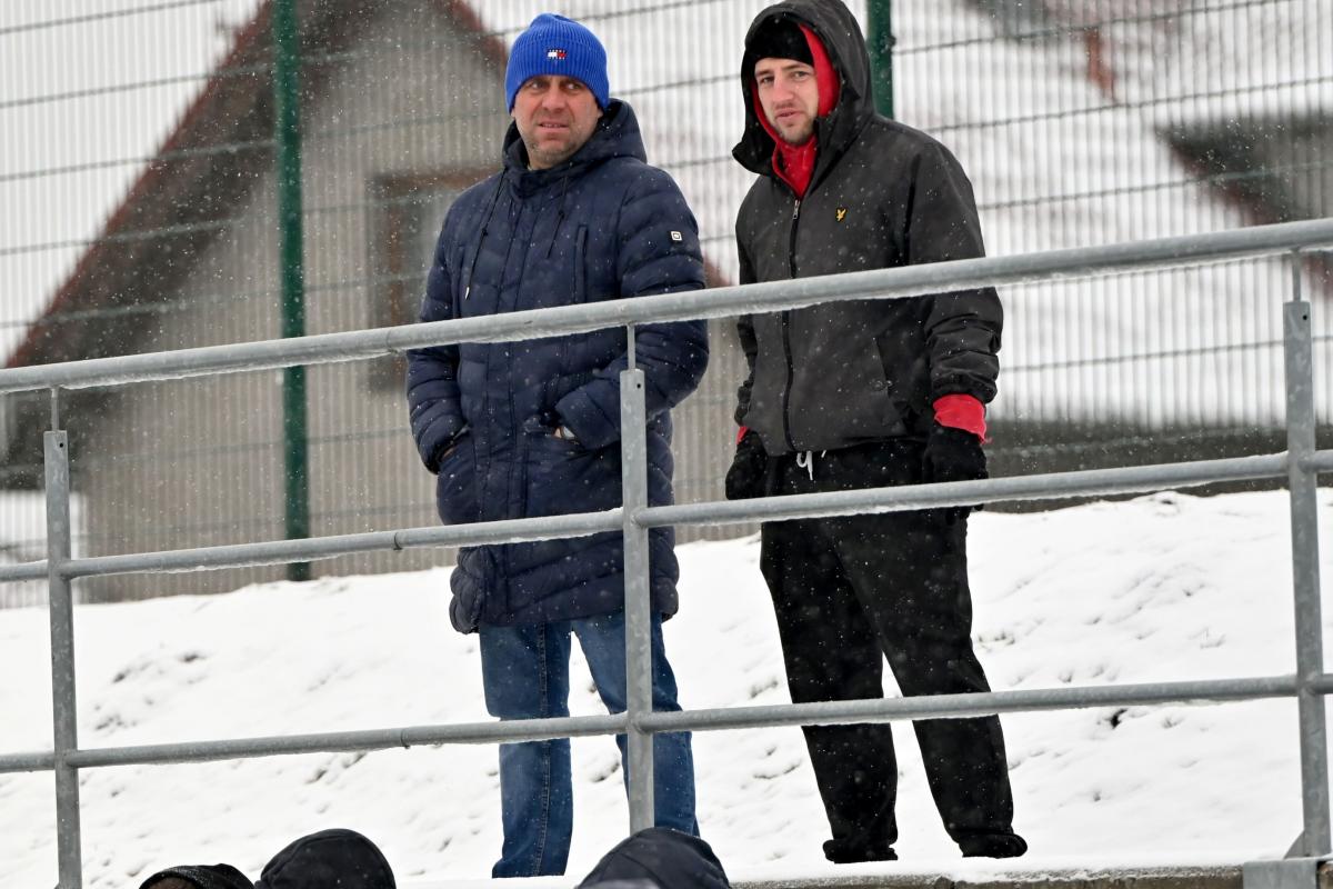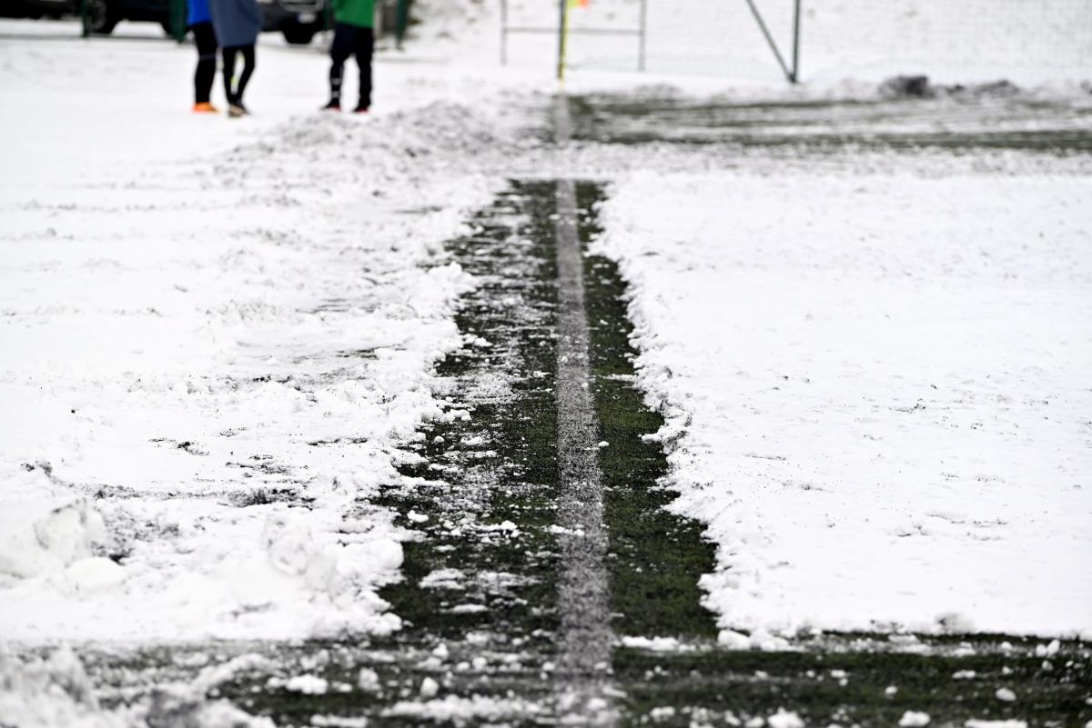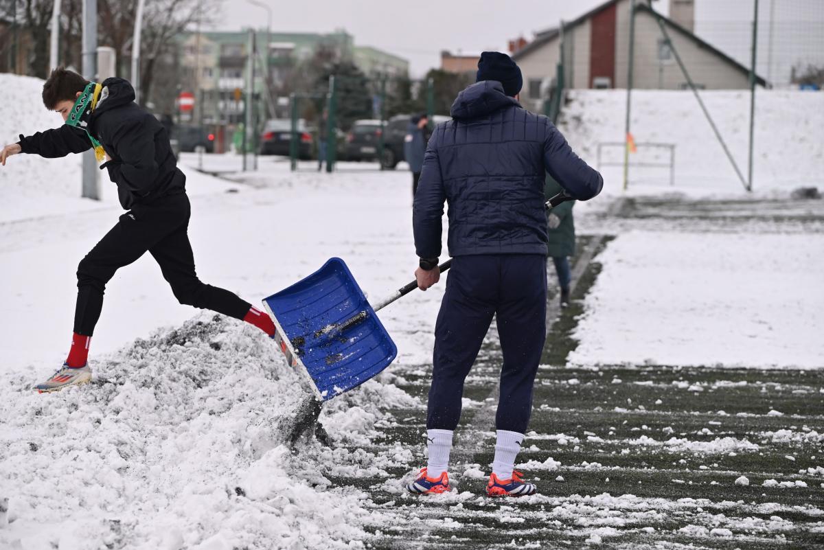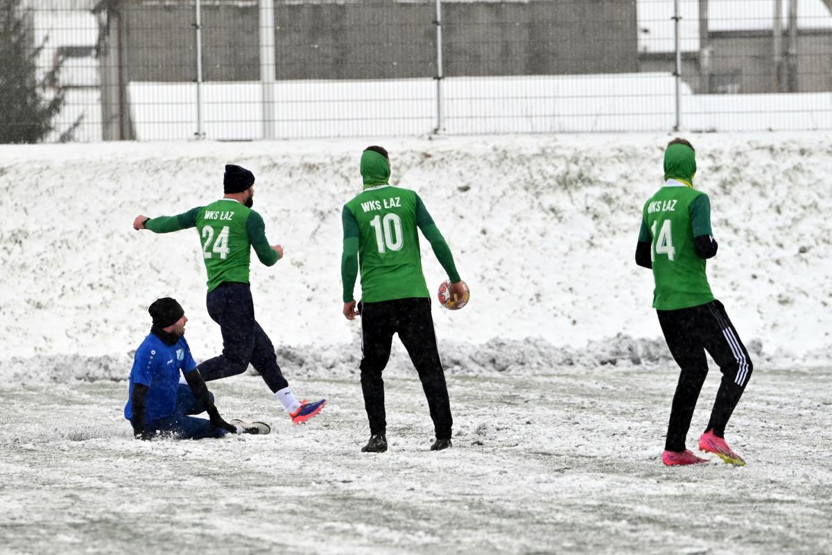 Niestety obie drużyny, żeby rozegrać zaplanowany sparing musiały odśnieżyć sobie boisko, bo opiekujący się okrąglakiem żarski MOSRiW „zapomniał” to zrobić.