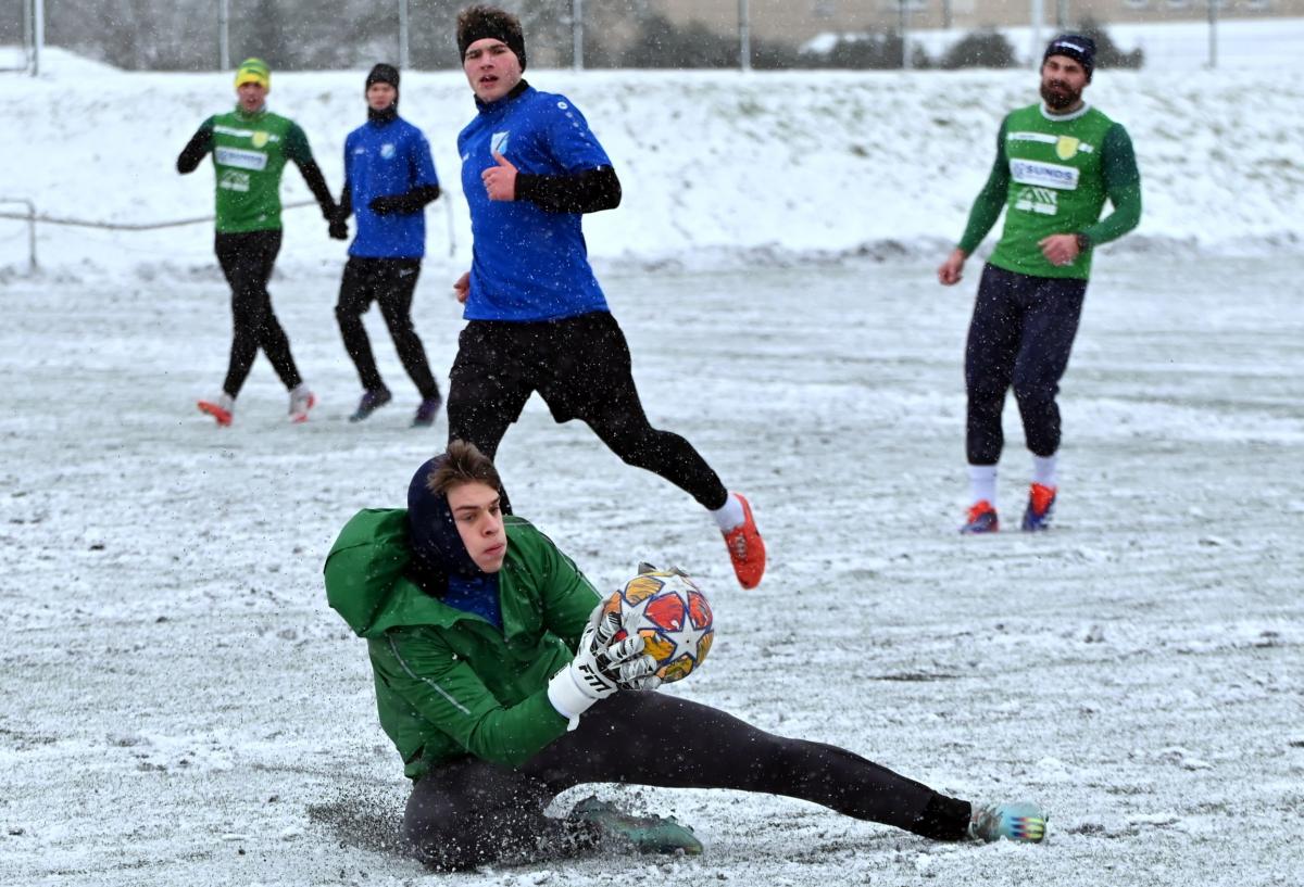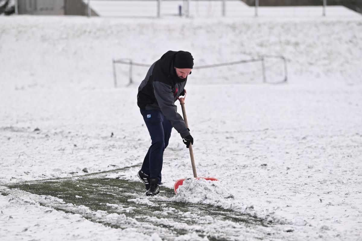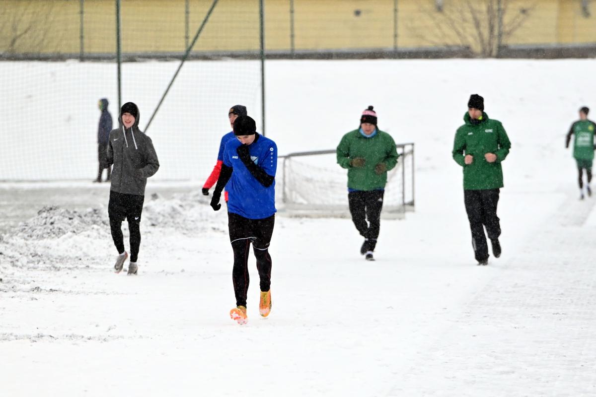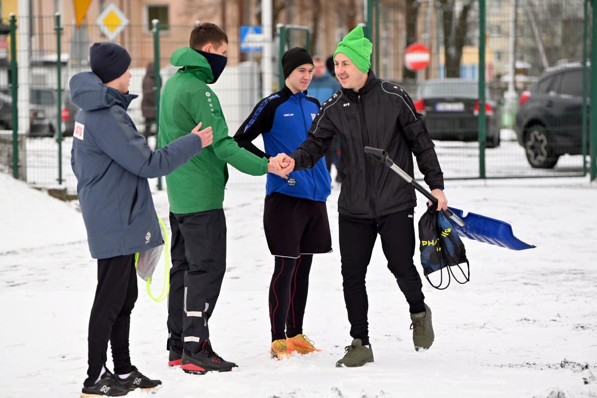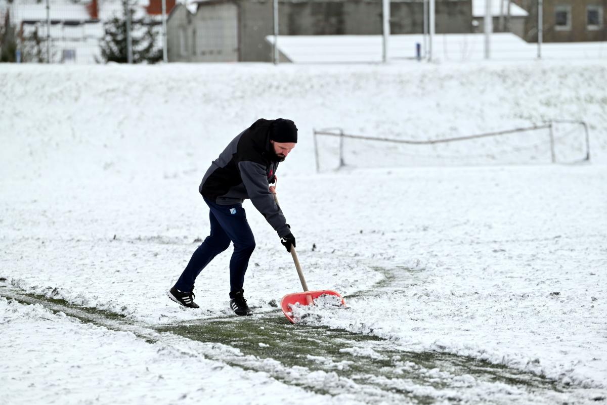Niestety obie drużyny, żeby rozegrać zaplanowany sparing musiały odśnieżyć sobie boisko, bo opiekujący się okrąglakiem żarski MOSRiW „zapomniał” to zrobić.
