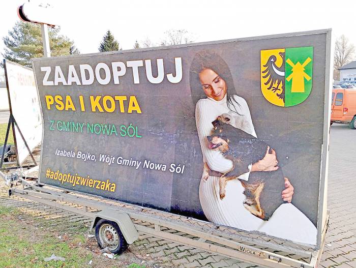 Pisaliśmy o tym w styczniu ub. roku. Opozycja zarzucała wtedy wójt, że prowadzi kampanię za publiczne pieniądze. Bilbordy zostały opłacone z funduszy promocyjnych gminy i kosztowały 2.250 zł. Niektórzy radni twierdzili, że reklama miała za cel jedynie ocieplenie wizerunku wójt. Wkrótce potem okazało się, że pies, którego na zdjęciu tuliła wójt, nie był wcale bezdomny. Nazywał się „Fafik” i należał do Józefy Domrzalskiej, byłej sołtys Starego Stawu. Posłużył jako model.