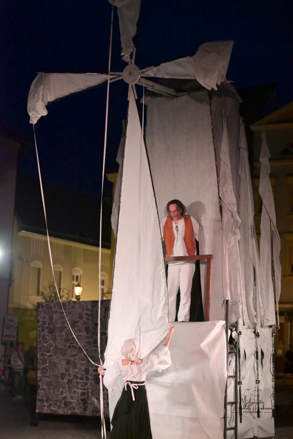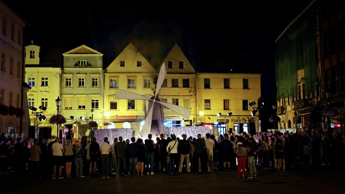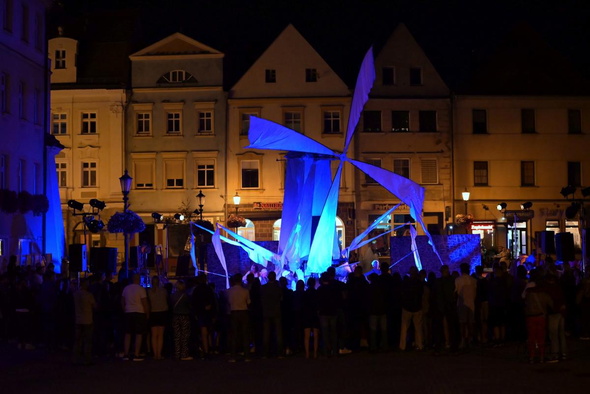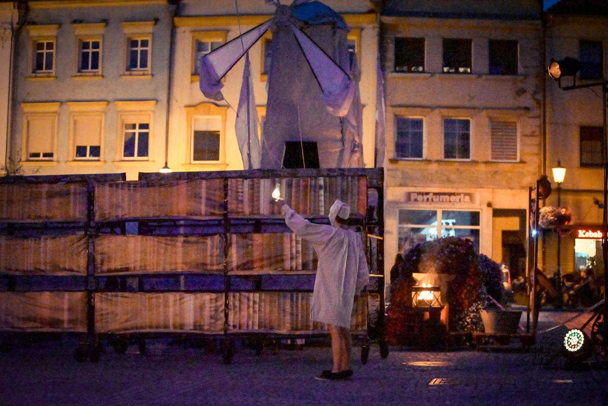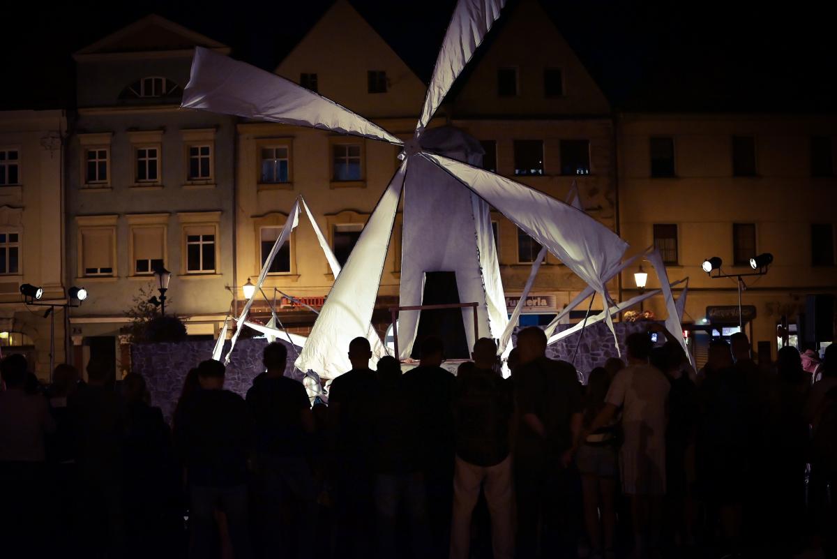 Spektakl Teatru HoM – „Don Kichot” – wystawiony na żarskim Rynku w piątkowy wieczór(8.08) w ramach 34. Międzynarodowych Plenerowych Spotkań ze Sztuką w Żarach, to monumentalne widowisko, które tchnęło nowe życie w klasyczną opowieść Miguela de Cervantesa. Przed oczami licznie zgromadzonej publiczności, rozegrał się spektakl, który łączy klasyczne techniki teatru ulicznego z koncertową energią i współczesną refleksją nad losem marzycieli.