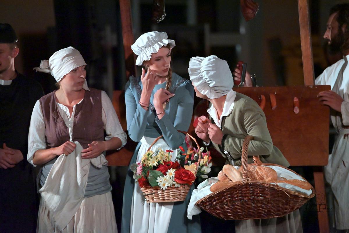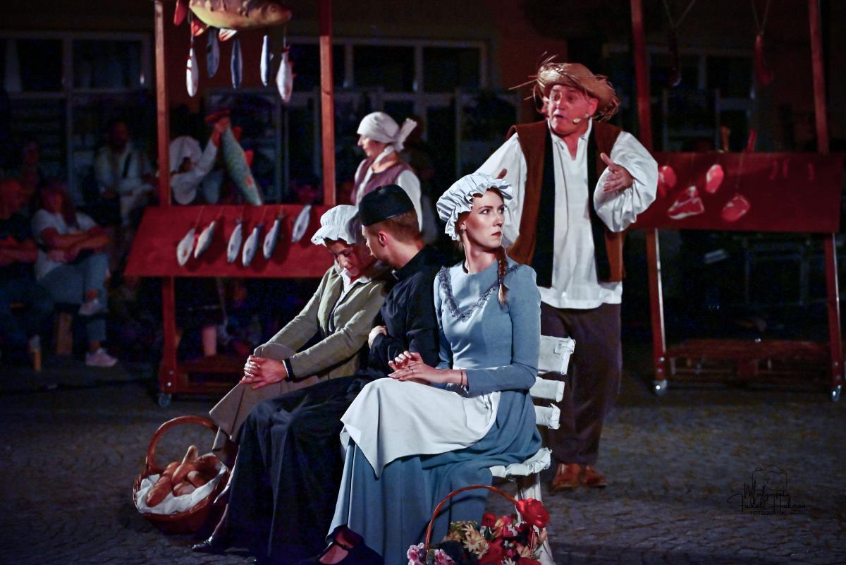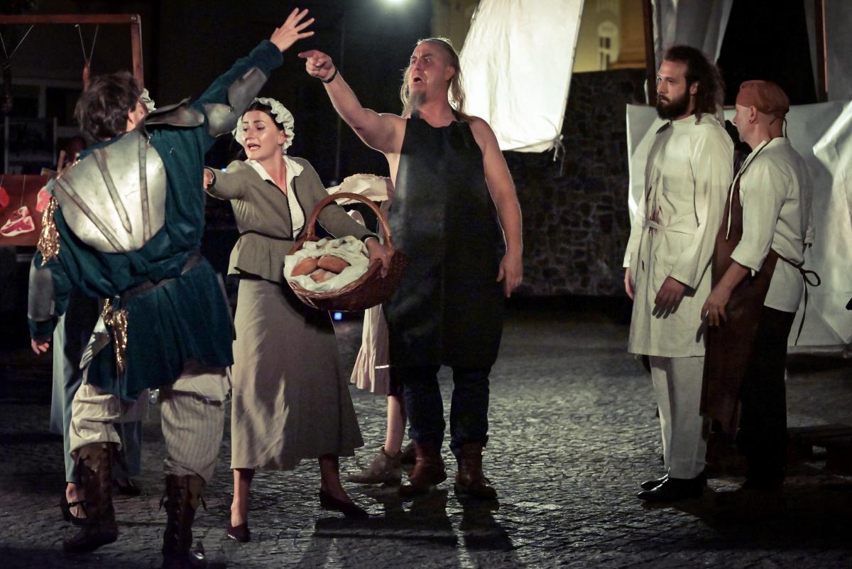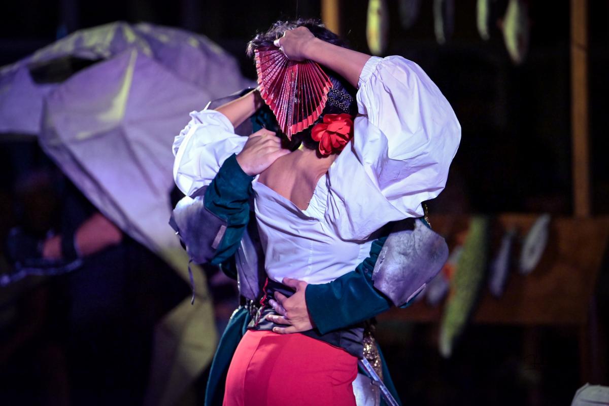 Od samego początku uwagę widzów przykuwa dynamiczne otwarcie – miasteczko pełne zgiełku, intryg i pozorów. Scena tętni życiem, a narratorzy malują obraz świata pełnego hipokryzji i chaosu, w którym trudno odróżnić cnotę od występku. To właśnie w tej rzeczywistości pojawia się Don Kichot – niepoprawny idealista, który swoją wizją świata rozbija szarą codzienność. Jego walka z „wiatrakami” staje się symbolem starcia jednostki z systemem – i pytaniem o to, czy w dzisiejszym świecie jest jeszcze miejsce dla marzycieli.