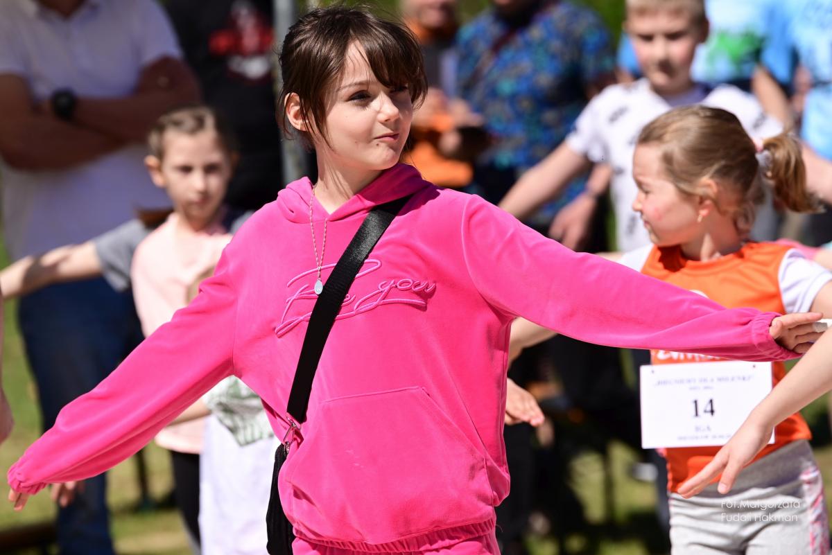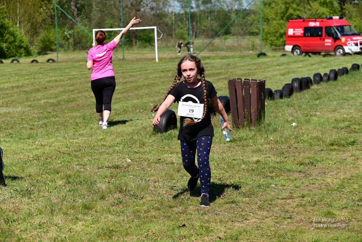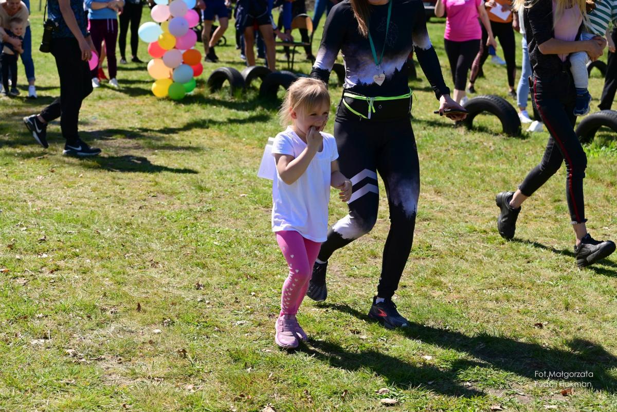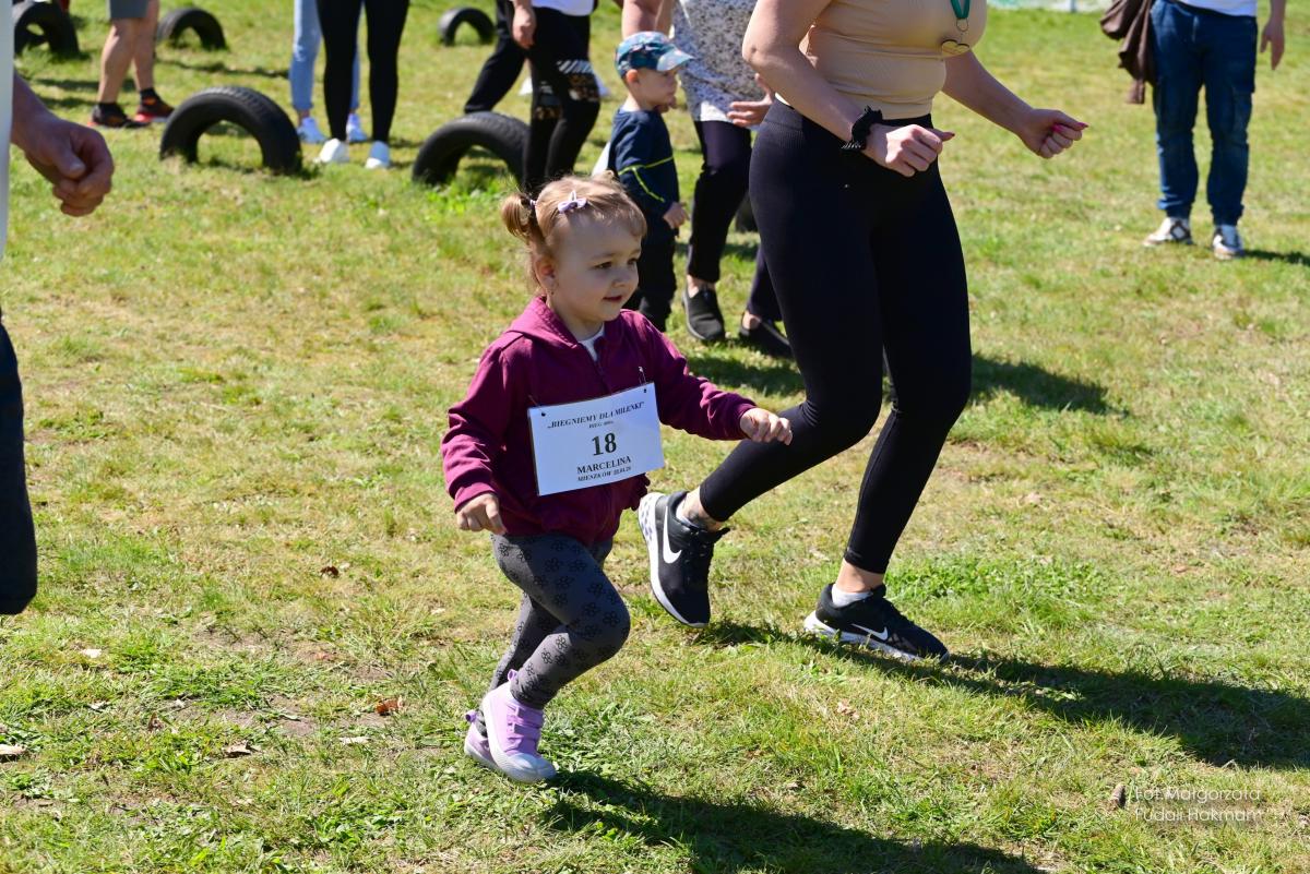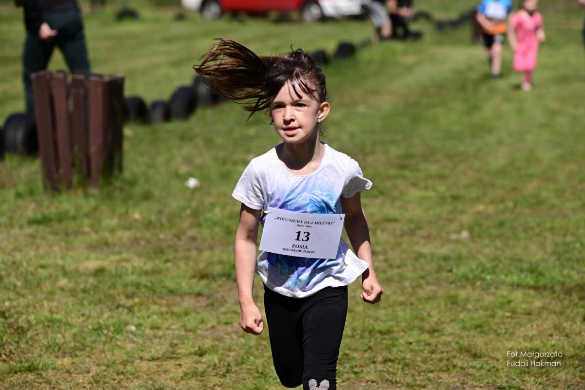 W biegu dla dzieci wystartowała Milenka, która z uśmiechem na ustach zameldowała się na mecie.