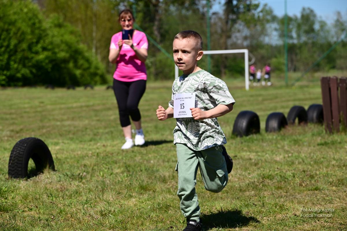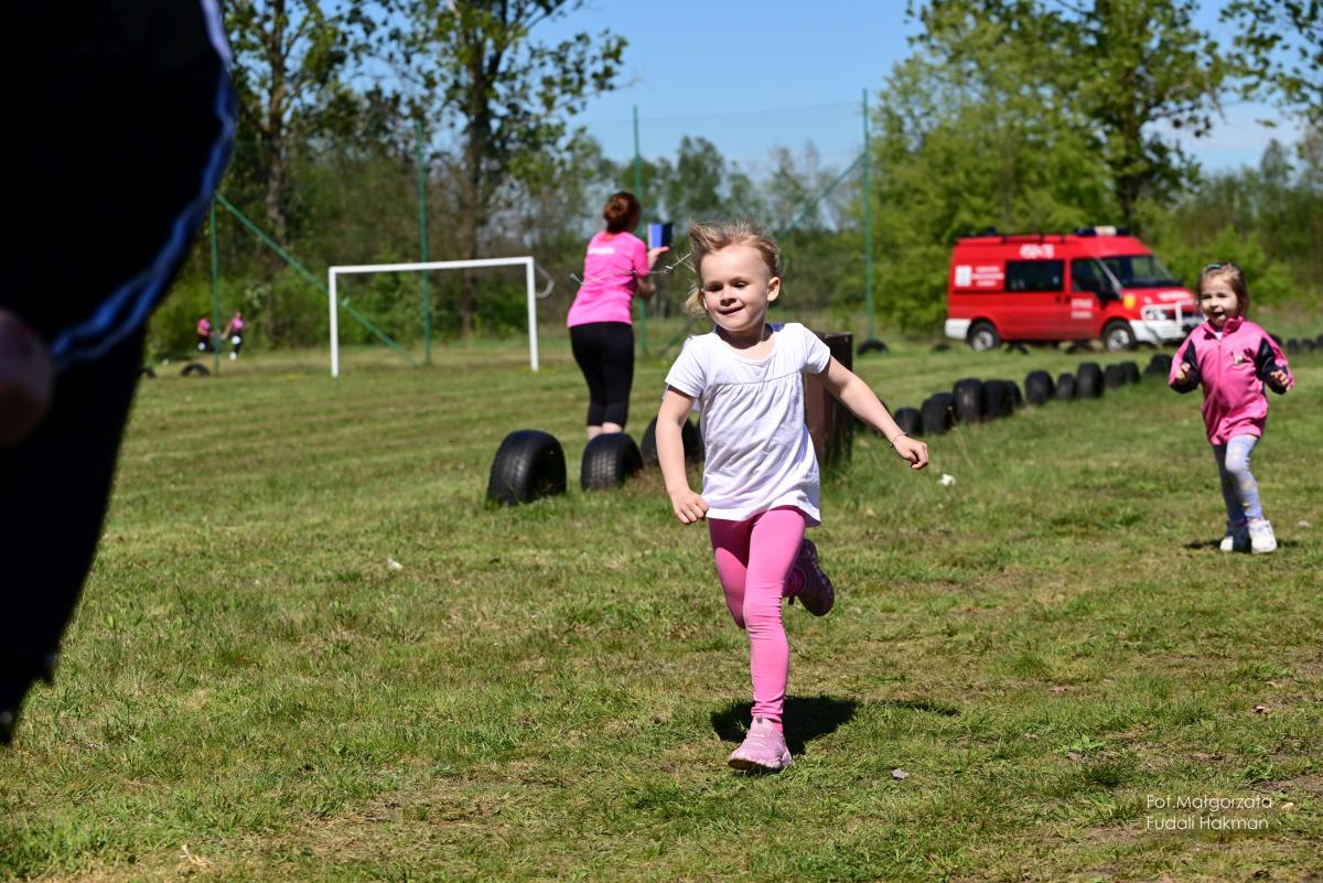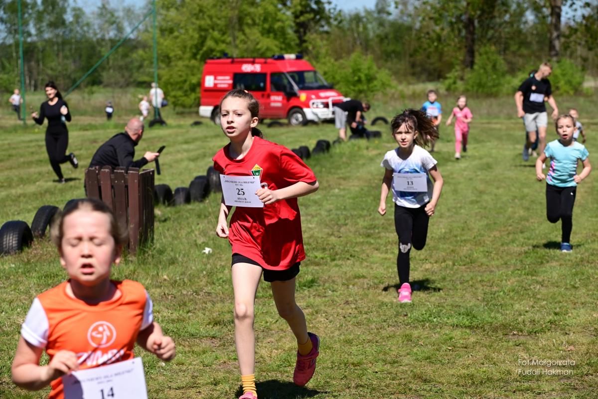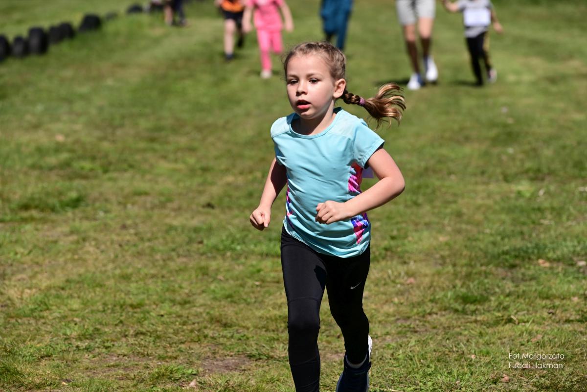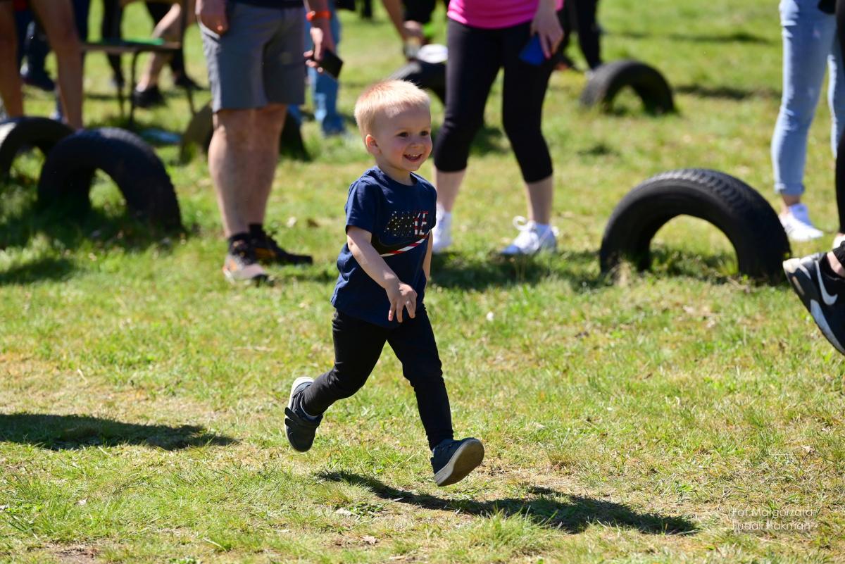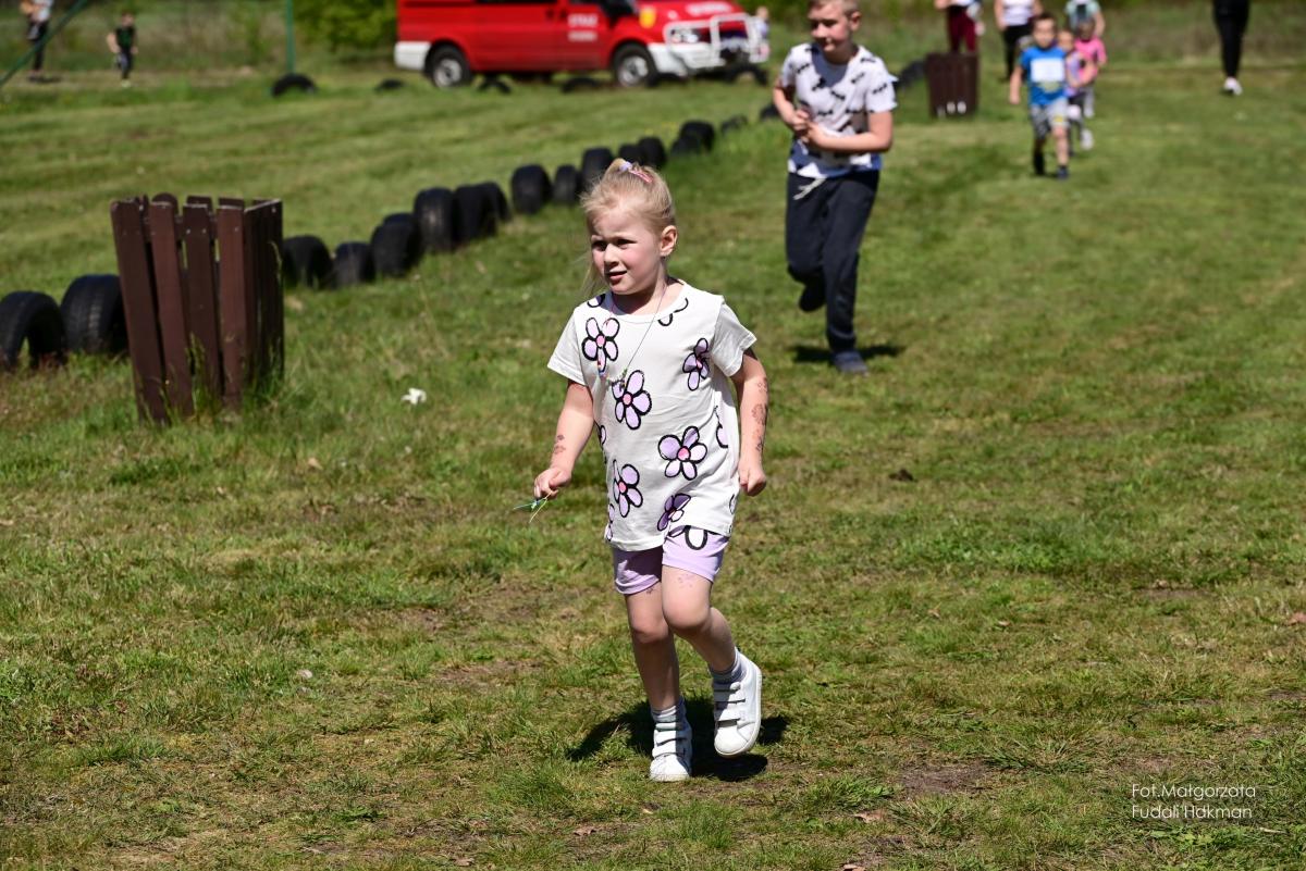 W biegu dla dzieci wystartowała Milenka, która z uśmiechem na ustach zameldowała się na mecie.