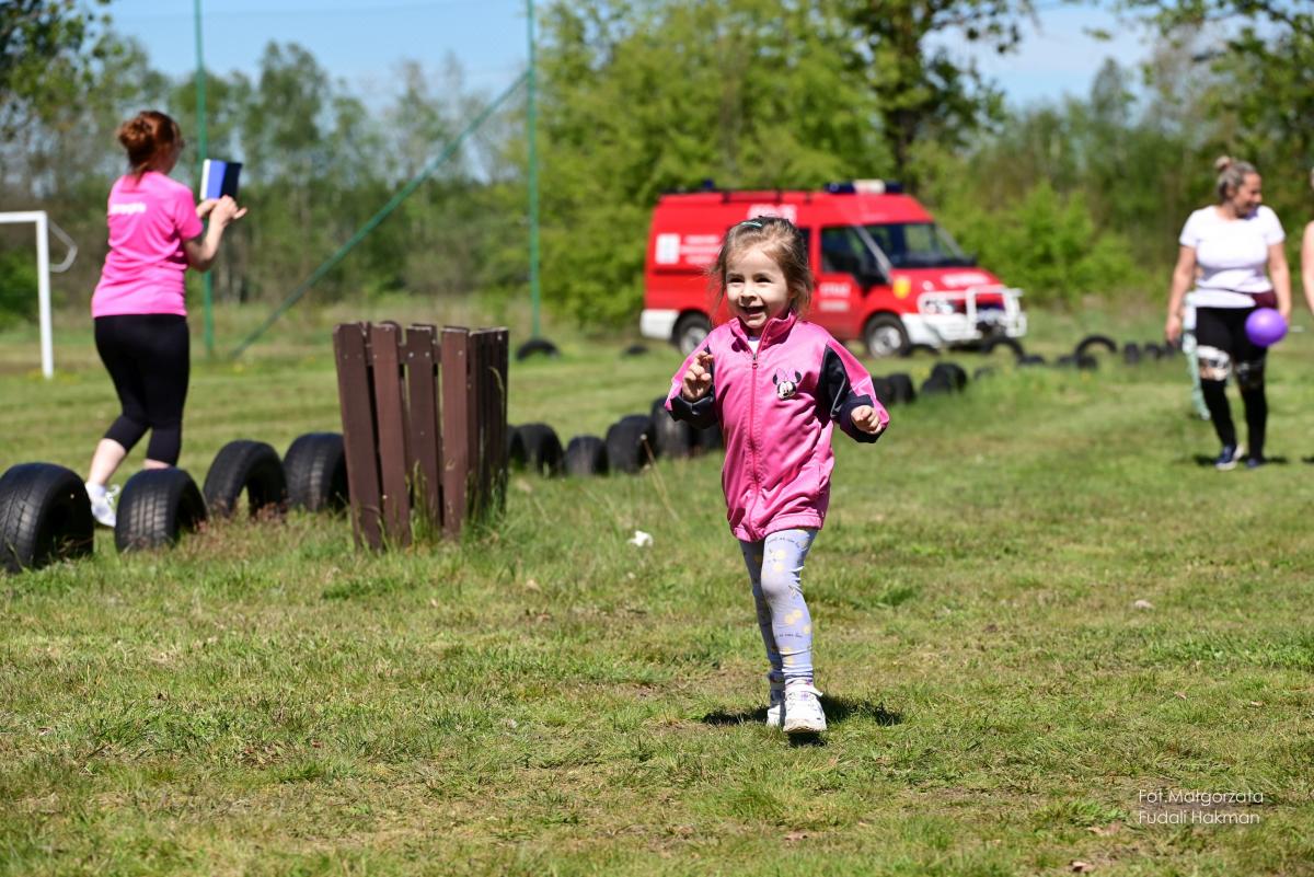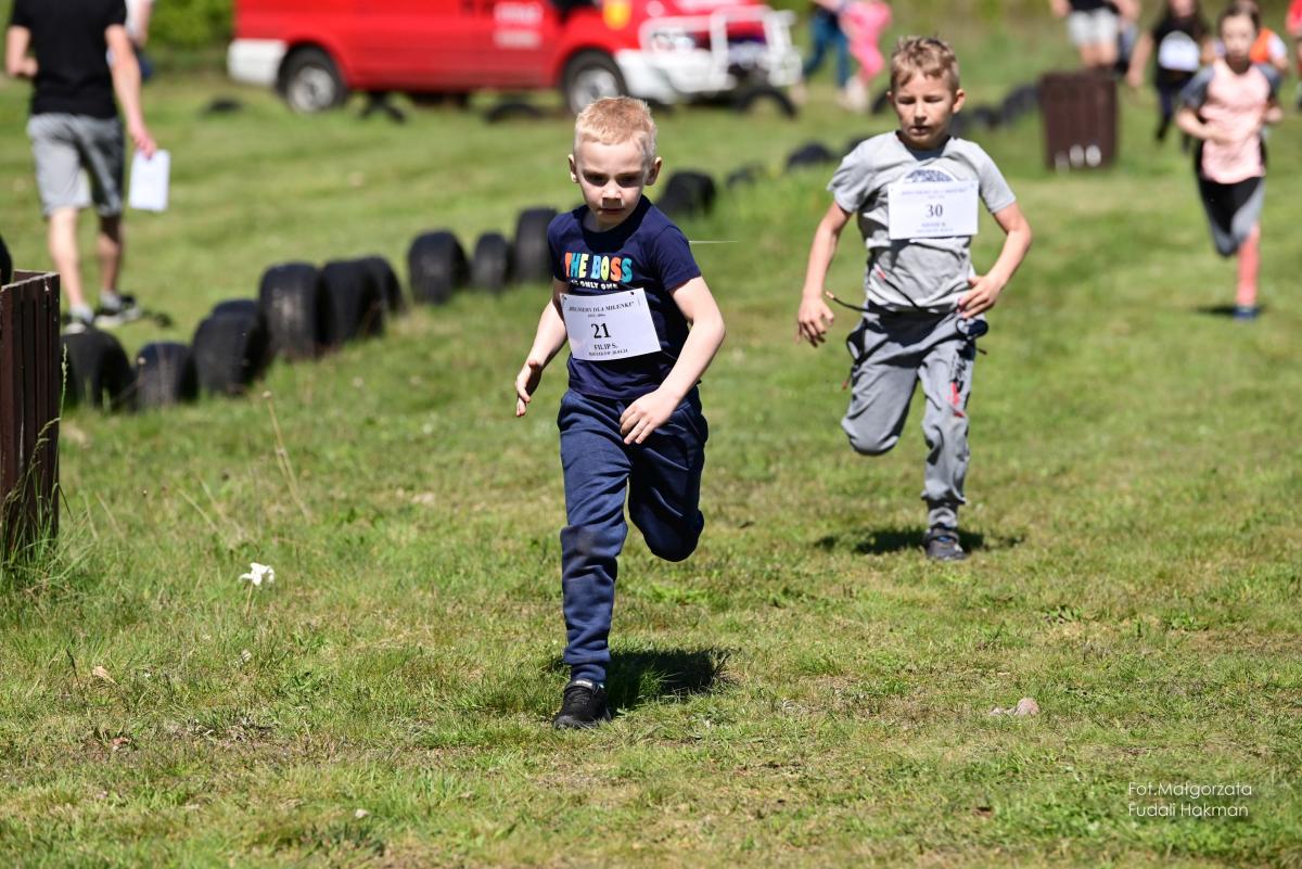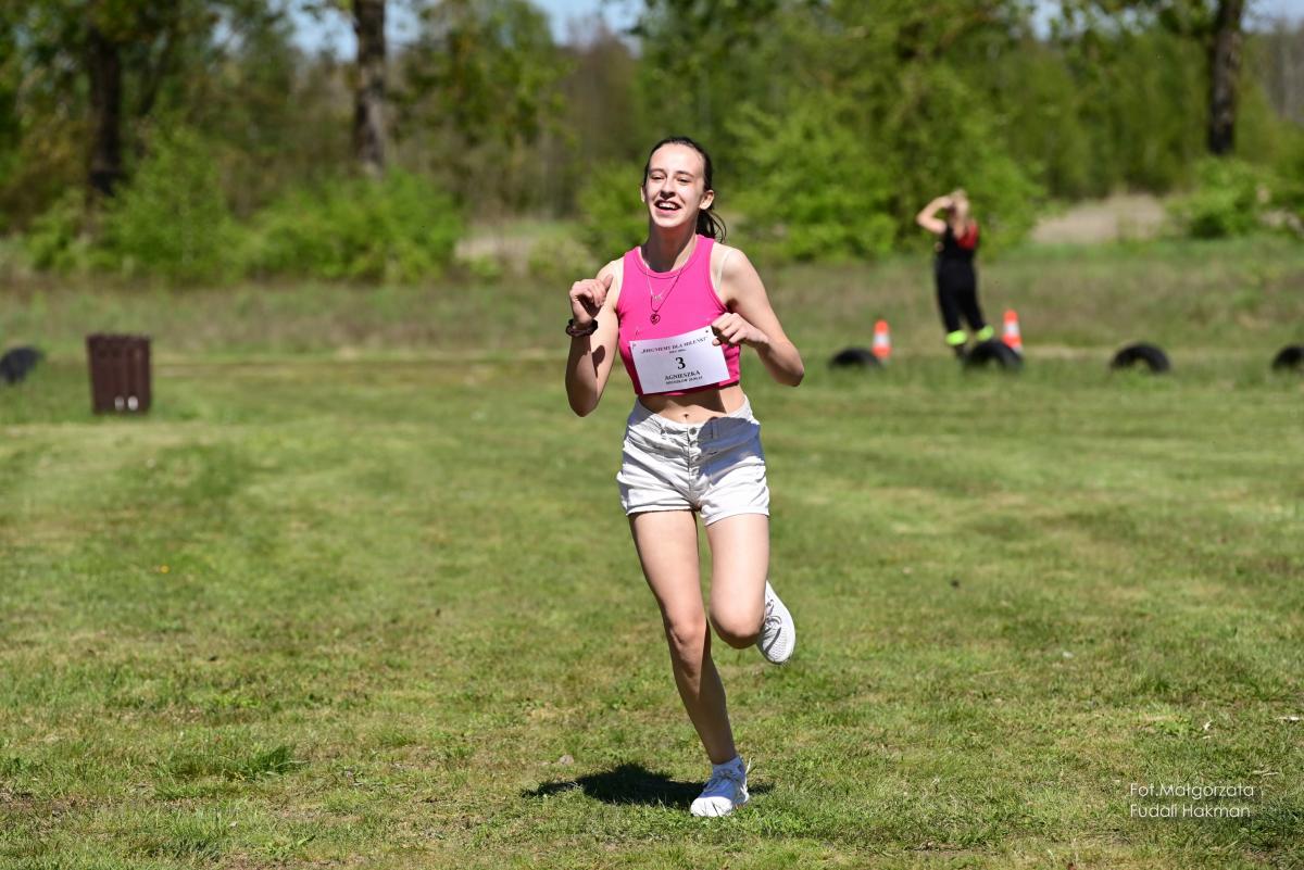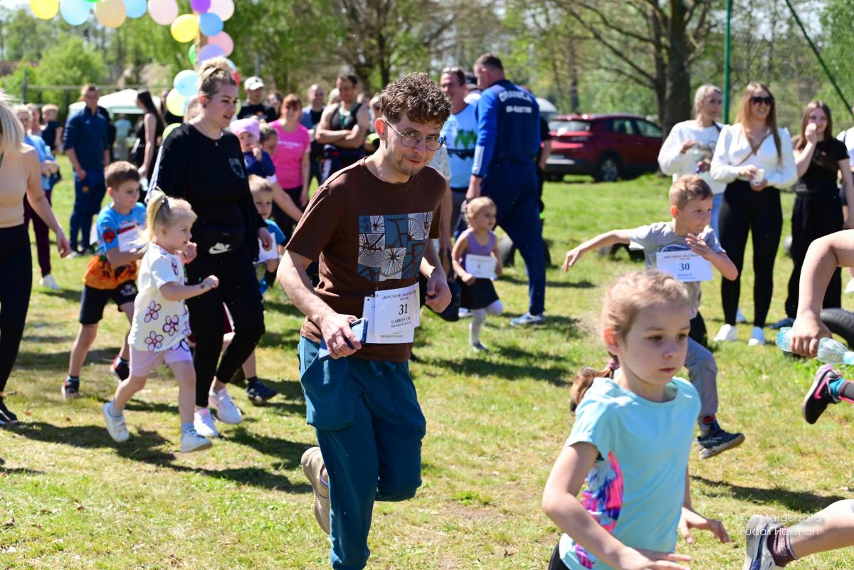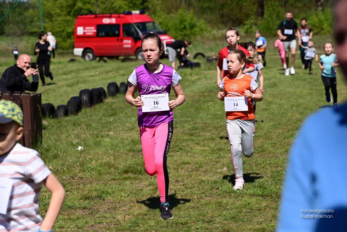 W biegu dla dzieci wystartowała Milenka, która z uśmiechem na ustach zameldowała się na mecie.