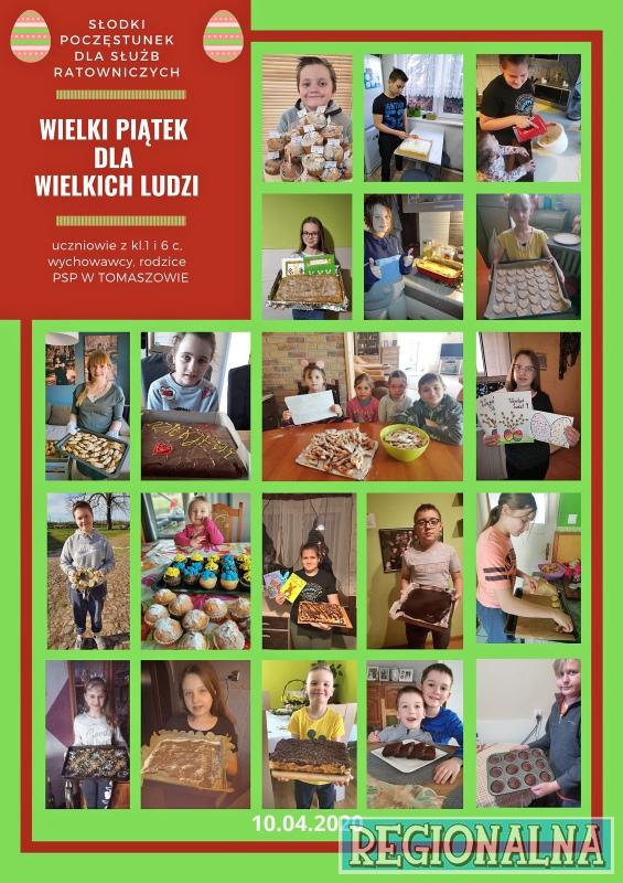 Uczniowie Szkoły Podstawowej w Tomaszowie, w czasie przerwy od zajęć, postanowili wspomóc służby, które na co dzień pomagają mieszkańcom w walce z koronawirusem.