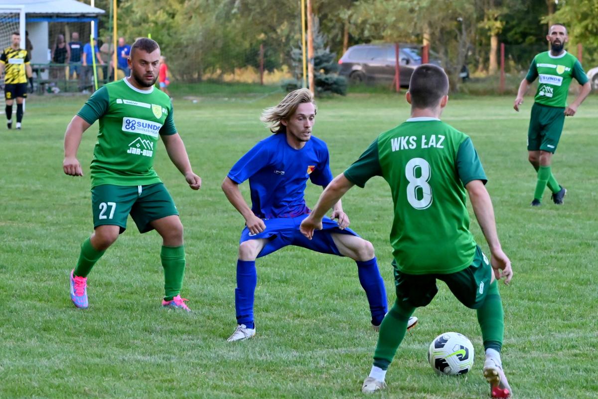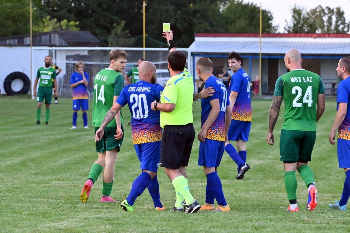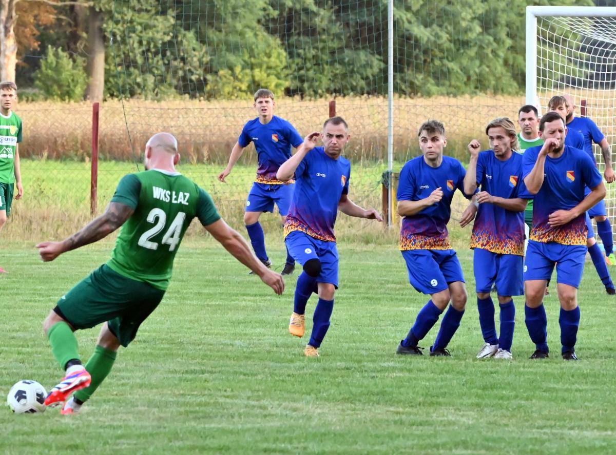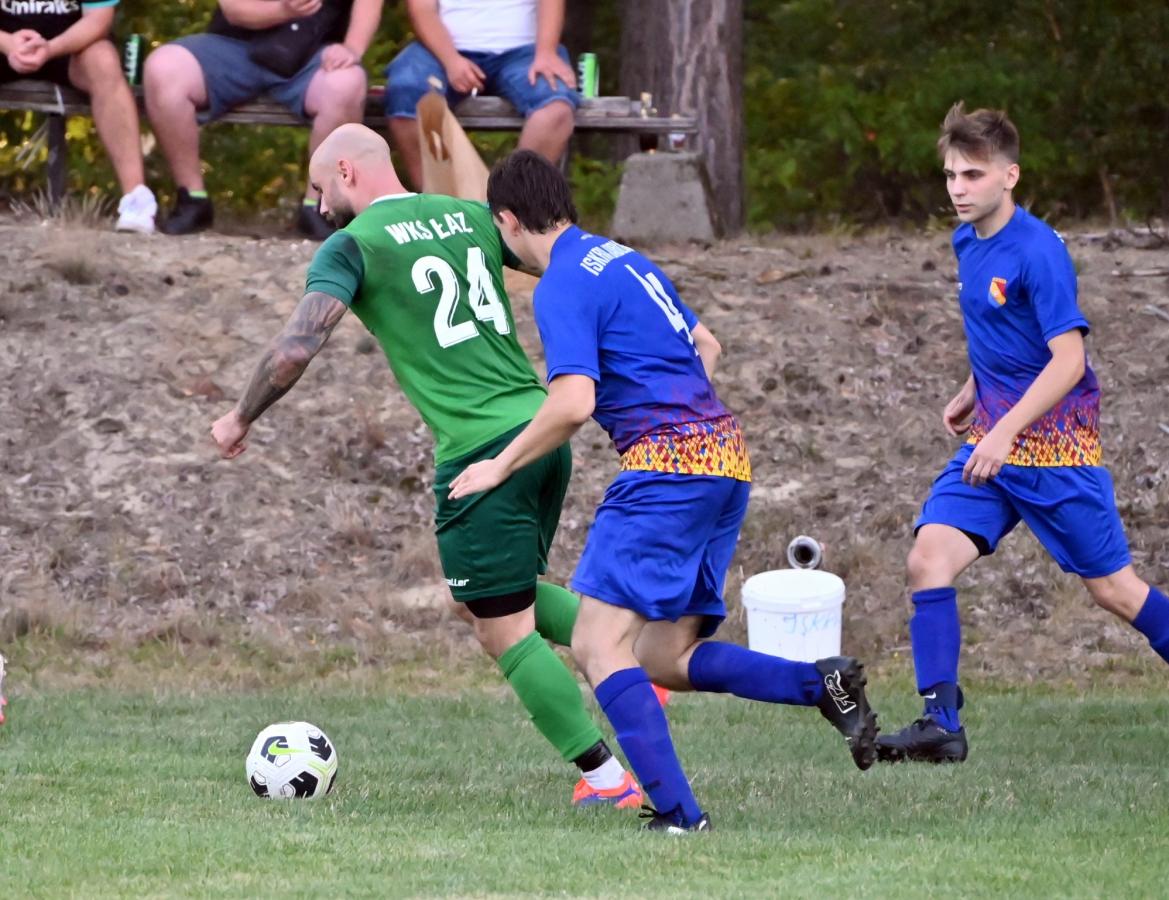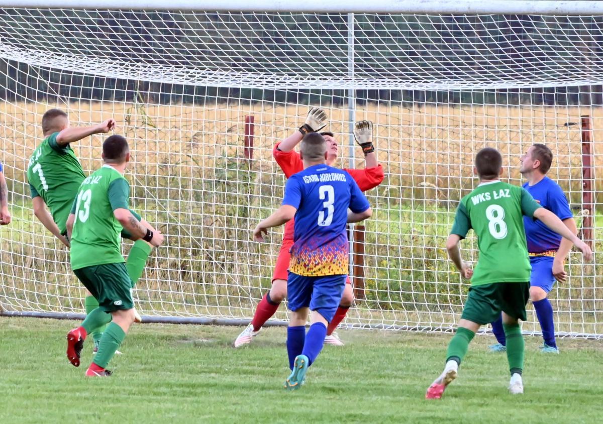 To ekipa Pawła Karbowskiego była faworytem przed tym spotkaniem. Ambitny cel awansu do A-klasy może być zrealizowany pod warunkiem, że WKS Łaz będzie wygrywał swoje pojedynki a rywale będą tracili punkty. Plan był więc prosty. Zainkasować 3 punkty i czekać na kolejne mecze. Jednak Iskra nie zamierzała się położyć na boisku i dać liderowi wygrać. Ambitnie podjęła wyzwanie i nie pozwoliła sobie wbić bramki aż do 33 minuty, kiedy sama stanęła przed szansa na objęcie prowadzenia w tym meczu. Niestety Tomasz Siwak zmarnował ją nie strzelając karnego. Rafał Lipiński wyczuł intencje zawodnika z Jabłońca i obronił jego strzał. Niewykorzystane sytuacje się mszczą i tuż przed przerwą Paweł Karbowski pięknym strzałem z rzutu wolnego pokonał bramkarza gospodarzy i WKS na przerwę schodził z jednobramkowym prowadzeniem.