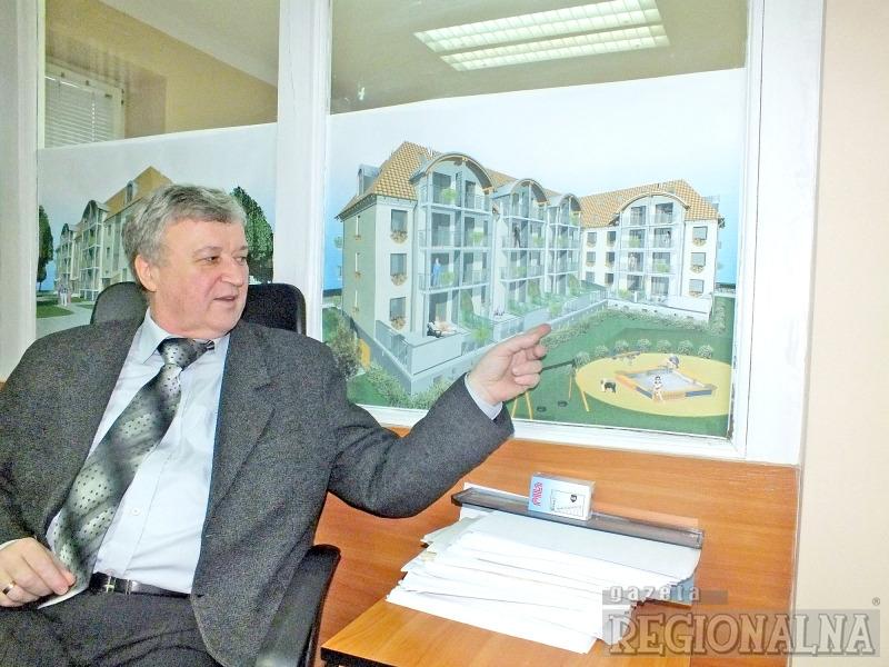 – Niedawno podpisaliśmy umowę na budowę osiedla we Wrocławiu. W trzech etapach wybudujemy tam łącznie 120 mieszkań. Prace ruszą w przyszłym toku – zaznacza prezes. – Ten kontrakt dał nam gwarancję funkcjonowania przez cały przyszły rok. Stawiamy też budynek handlowo-usługowy w Głogowie. Ta inwestycja jest warta 20 mln zł – wylicza. I zapewnia, że firma nie zapomina o Żarach. – Na 2012 rok szykujemy kolejny blok przy ul. Spokojnej. Będzie tam 27 mieszkań, średnio o wielkości 55 mkw. Inwestycja będzie kosztowała ok. 5 mln zł. Na razie nasza spółka developerska sprzedaje ostatnie mieszkania w pierwszym naszym bloku przy tej ulicy.  Pierwotnie planowaliśmy na ul. Spokojnej budowę domów jednorodzinnych w zabudowie szeregowej, ale większy popyt jest jednak na budynki wielorodzinne.