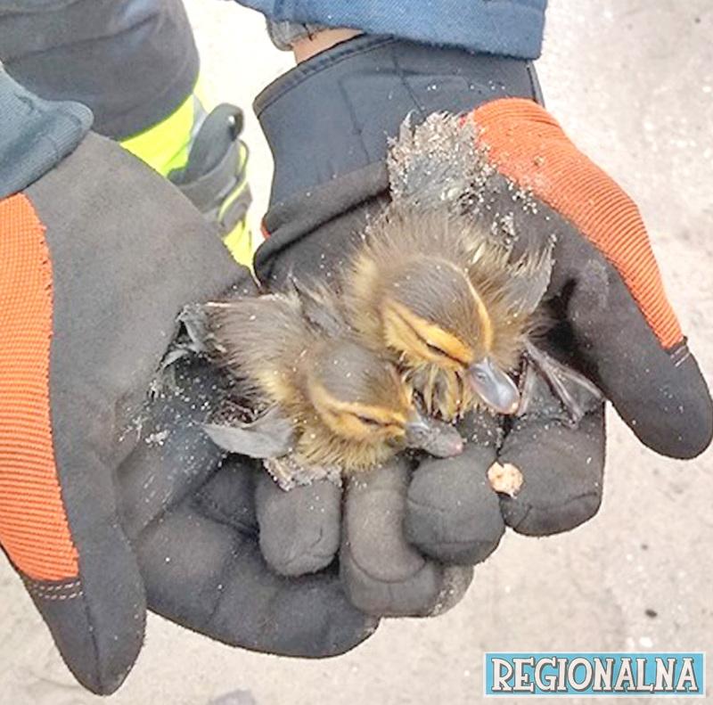 Młode kaczątka ratowali (w piątek, 5.07.) strażacy-ochotnicy z Jasienia.