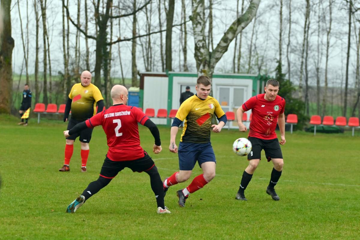 Zieloni Drożków przegrywają na inaugurację rundy wiosennej w żarskiej B-klasie z drugą drużyną Delty Sieniawa Żarska 0:1. Jedyna bramkę strzelił dla gości Mariusz Sokołowski.