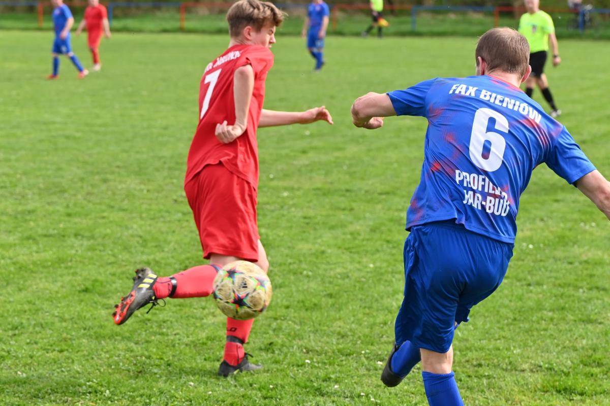 W 13. kolejce rozgrywek żarskiej B-klasy Fax Bieniów pokonał Iskrę Jabłoniec 6:2. Bramki dla Fax-u strzelili: Wojciech Kochanowski x2, Bogumił Kowalczewski, Dariusz Michalewicz, Konrad Baryła i Kamil Rowiński, a dla Iskry dwa gole zdobył Marcin Chmielewski.