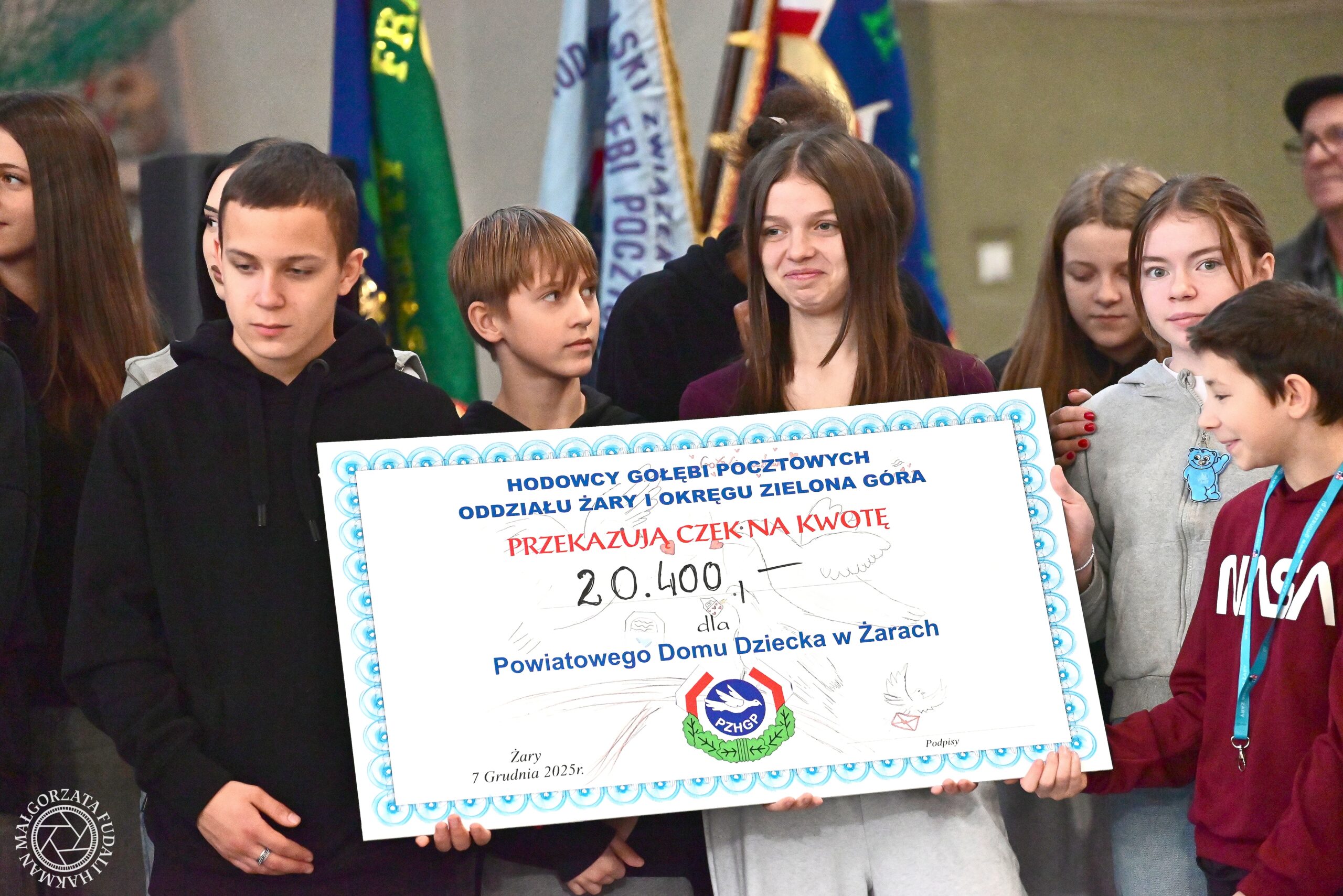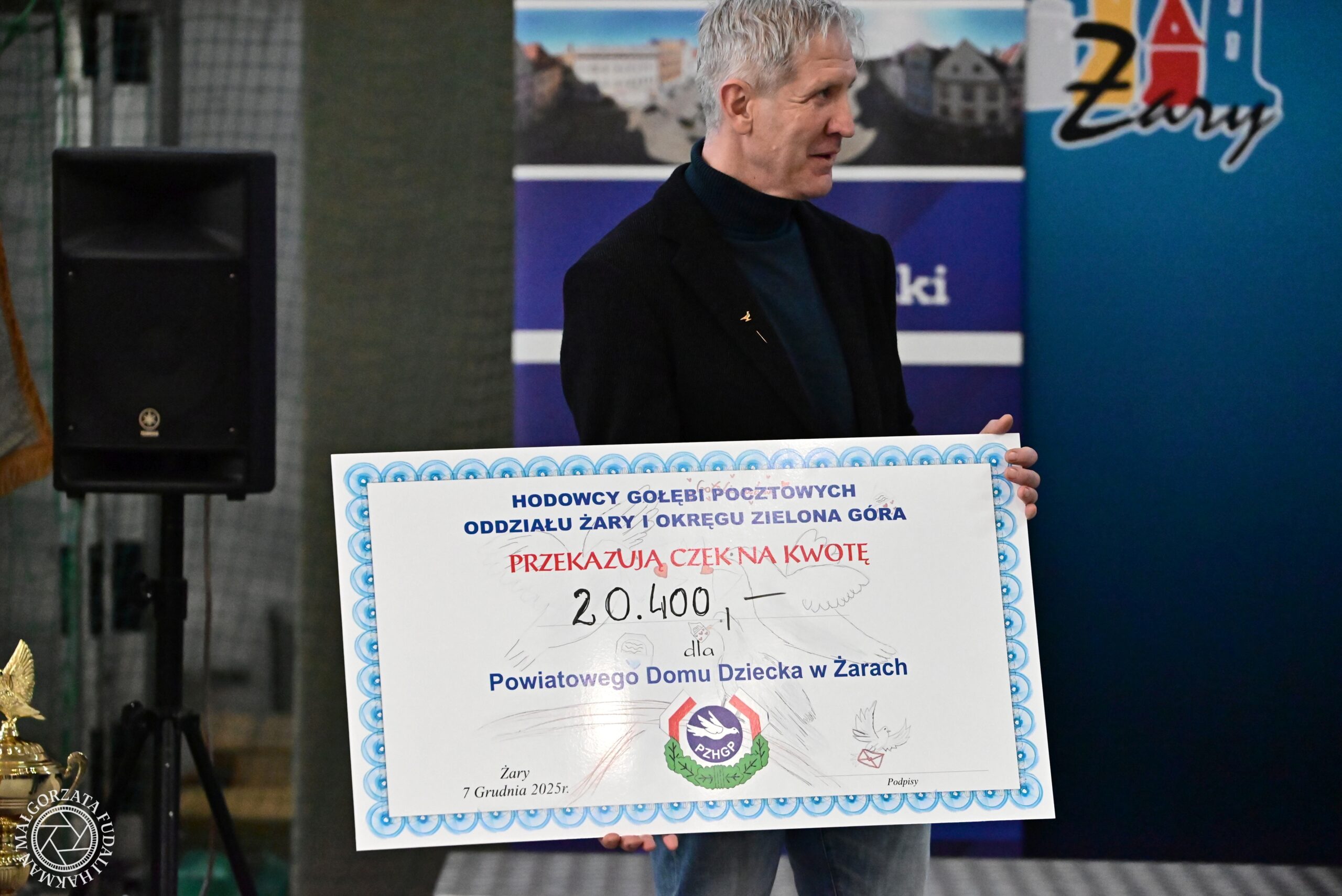 W trakcie wydarzenia odbyła się również aukcja gołębi, z której dochód został w całości przeznaczony na wsparcie podopiecznych Powiatowego Domu Dziecka w Żarach, prowadzonego przez Stowarzyszenie „Jaś i Małgosia”. Dzięki hojności hodowców i odwiedzających zebrano imponującą kwotę 20 400 zł, którą odebrały dzieci wraz ze swoimi opiekunami. Ten gest charytatywny spotkał się z ogromnym uznaniem uczestników wystawy.