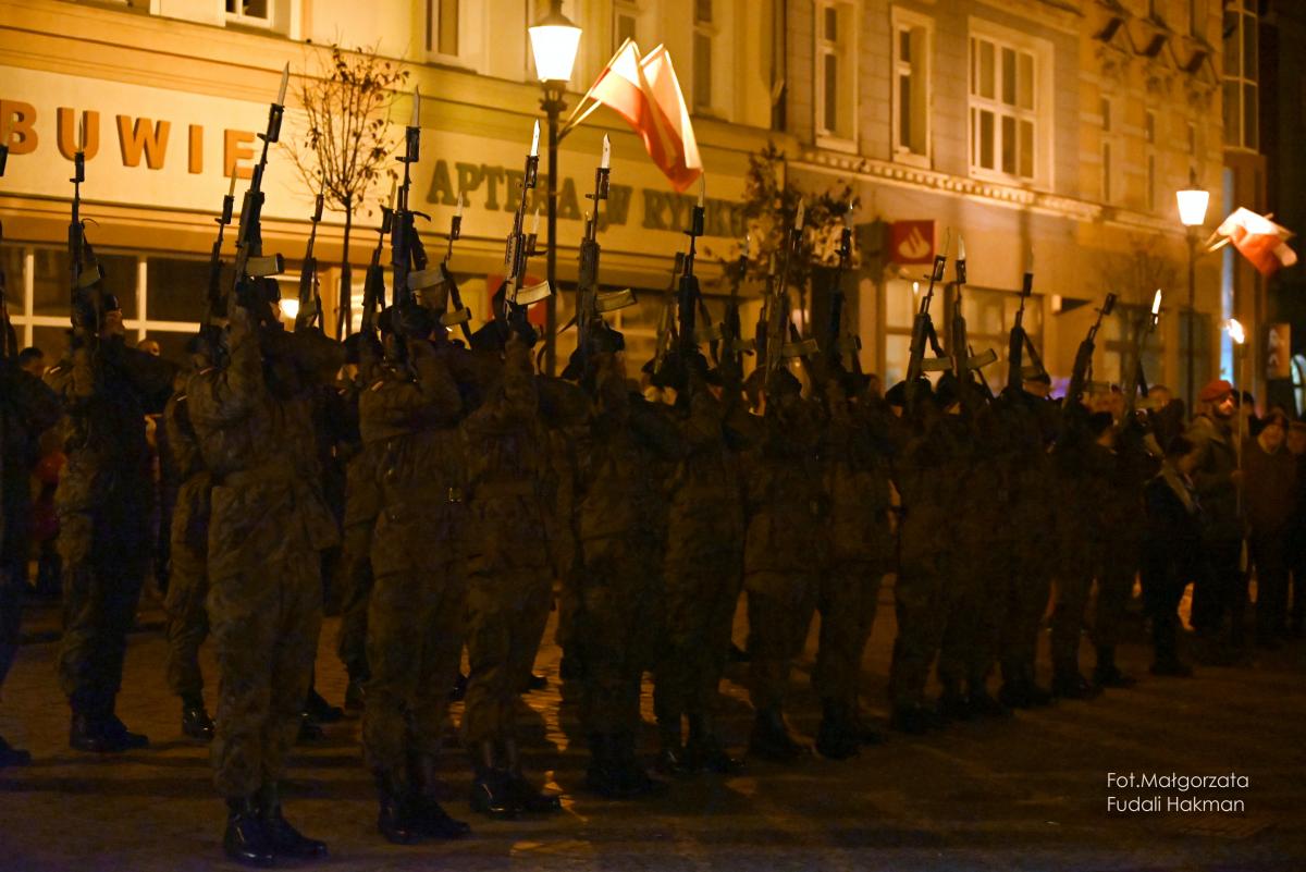 Punktualnie o 17.00 na żarskim rynku rozpoczął się capstrzyk z okazji Święta Niepodległości.
