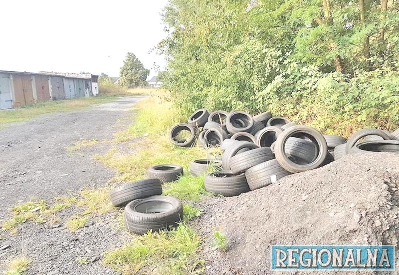 70 zużytych opon ktoś podrzucił w okolicach garaży przy ul. Kombatantów w Gozdnicy.
