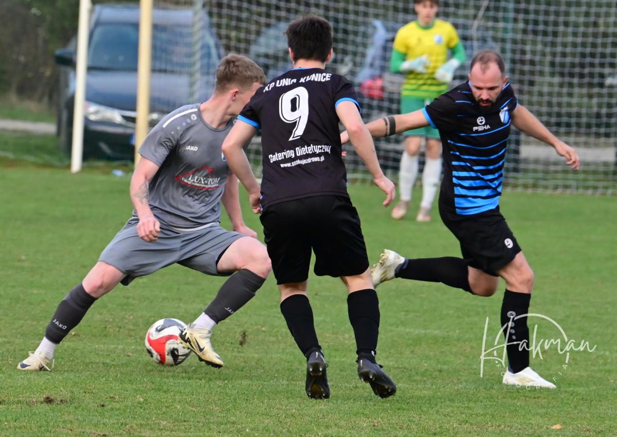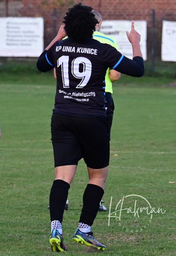 Druga odsłona zaczęła się bardzo podobnie jak pierwsza, czyli od niemrawych ataków podopiecznych Jarka Gada, którego tym razem zabrakło na ławce trenerskiej. Kuniczanie nie mieli pomysłu, jak sforsować gęste zasieki przed bramką gospodarzy i jak ograć dwa wielkie słupy stręczące im na drodze. Miejscowi nie kwapili się do bardziej otwartej gry, a gdy w 75 minucie strzelili drugiego gola to całkowicie okopali się na własnej połowie, zwłaszcza, że sił także zaczęło ubywać. Za to kuniczanie jakby złapali drugi oddech. Wprowadzenie do gry Brazylijczyka Rodriguesa de Almeidy Andre Viniciusa ożywiło grę gości. Jasiek Izdebski zwolniony z zadań napadziorskich mógł w końcu robić to, co robi najlepiej, czyli poigrać z piłką. I to właśnie zrobił. W 88. minucie ograł podmęczonych rywali i posłał piłkę do Andre, który huknął jak z armaty i zrobiło się 2:1. Nie tego się spodziewali gospodarze, którzy chcieli w spokoju dograć to spotkanie.